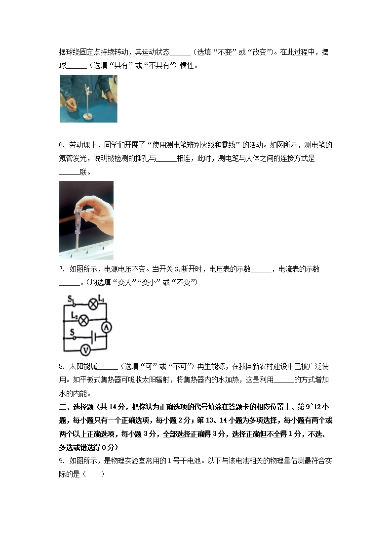 【文档名称】 2022年江西上饶中考物理试题及答案(Word版).doc