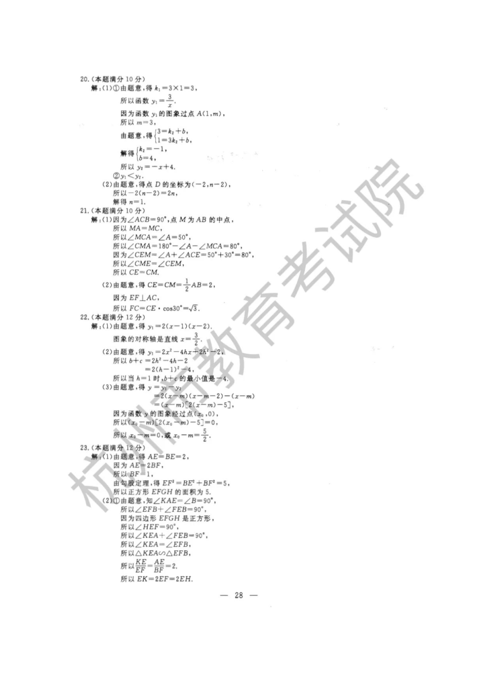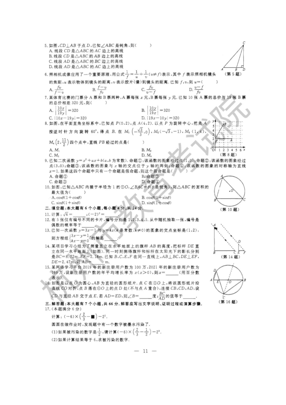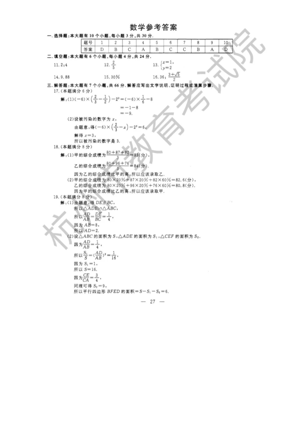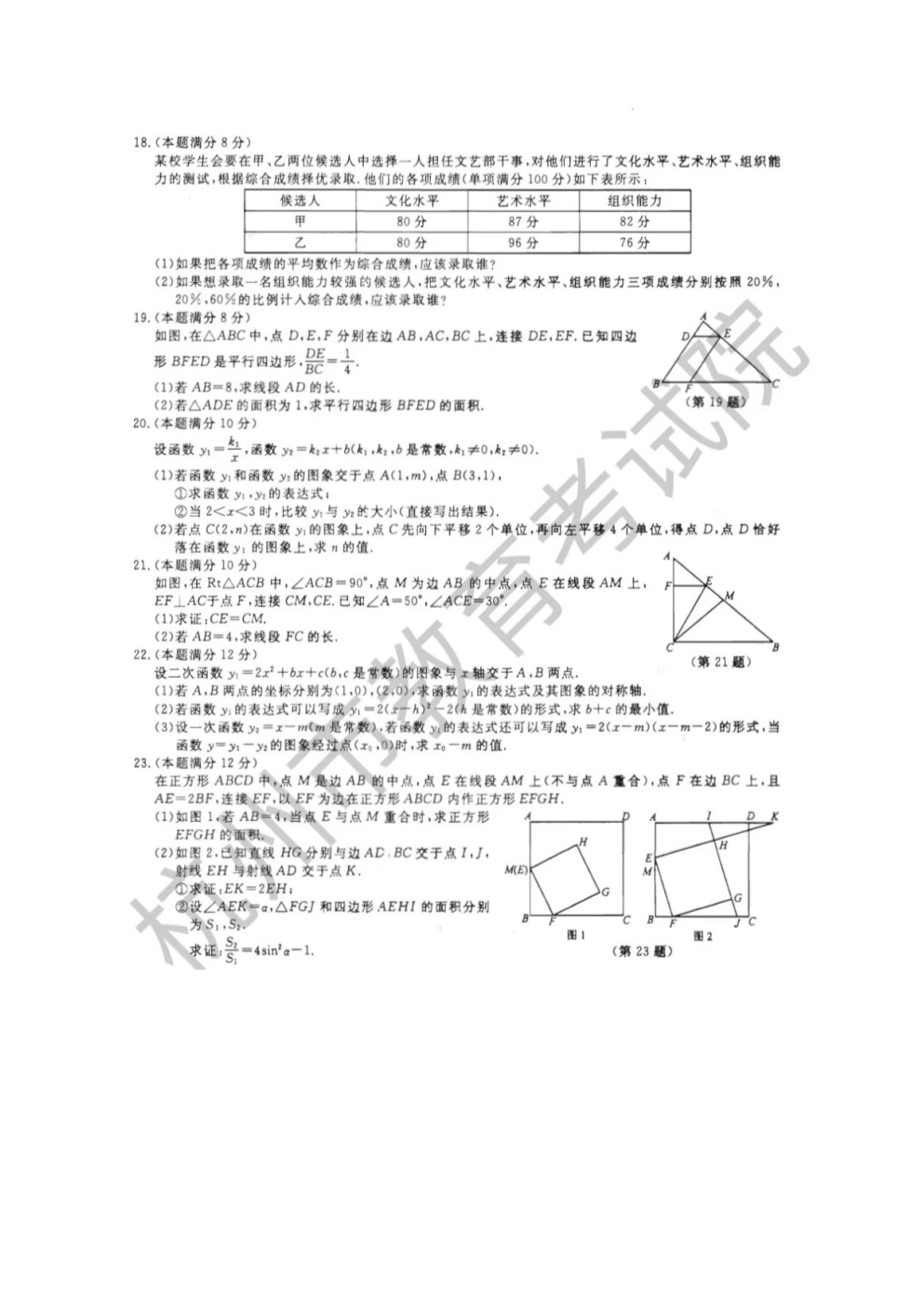 【文档预览】 无忧考网整理发布2022年浙江杭州中考数学试题及答案(图片版),前五页预览如下: