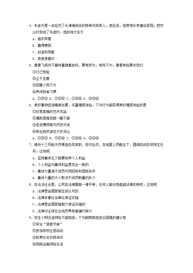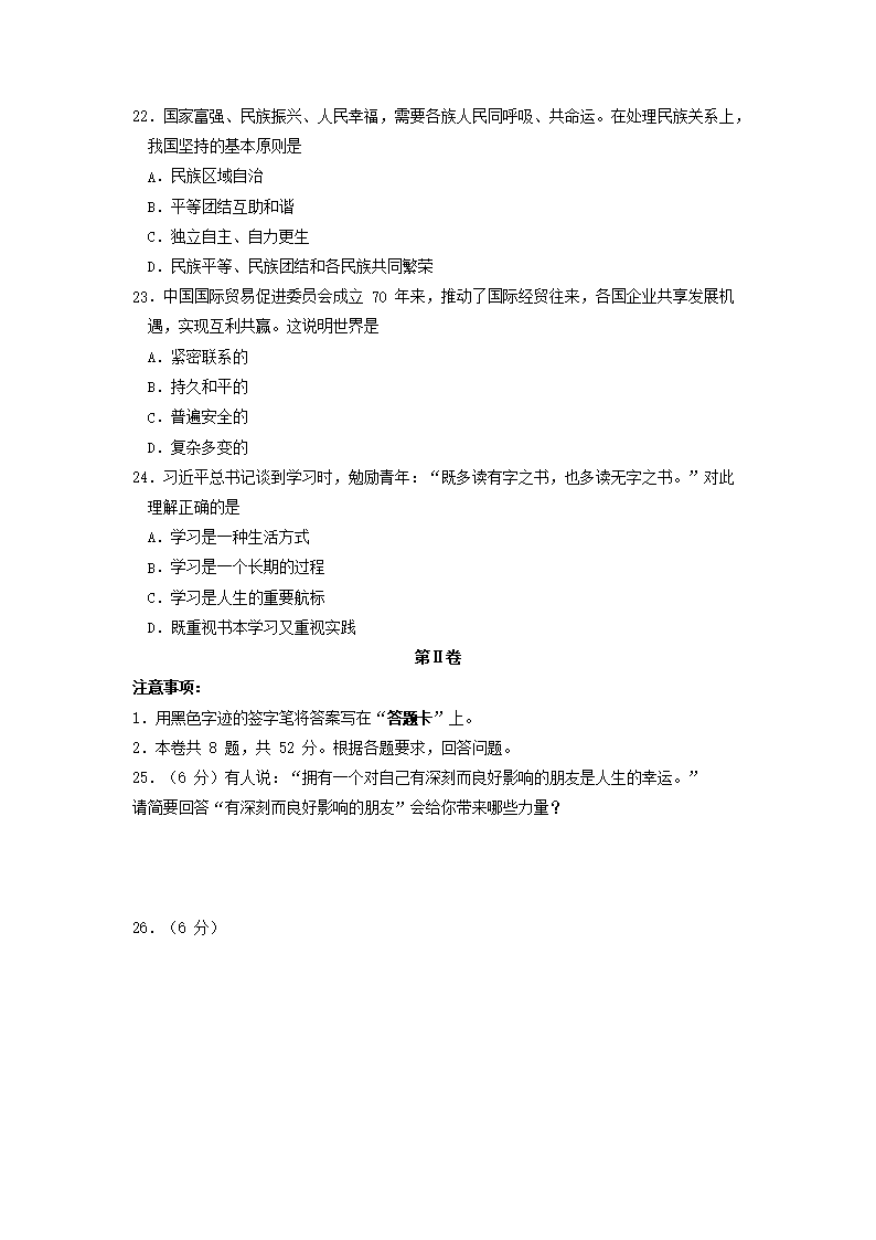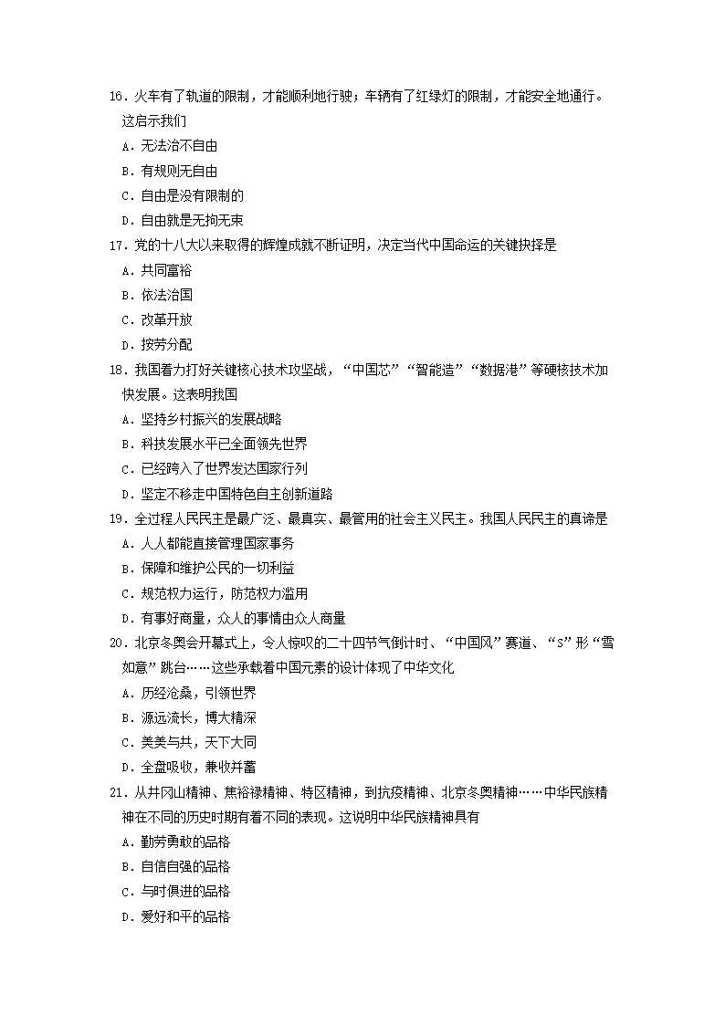 【文档预览】 无忧考网整理发布2022年天津蓟州区中考道德与法治真题及答案(Word版),前五页预览如下: