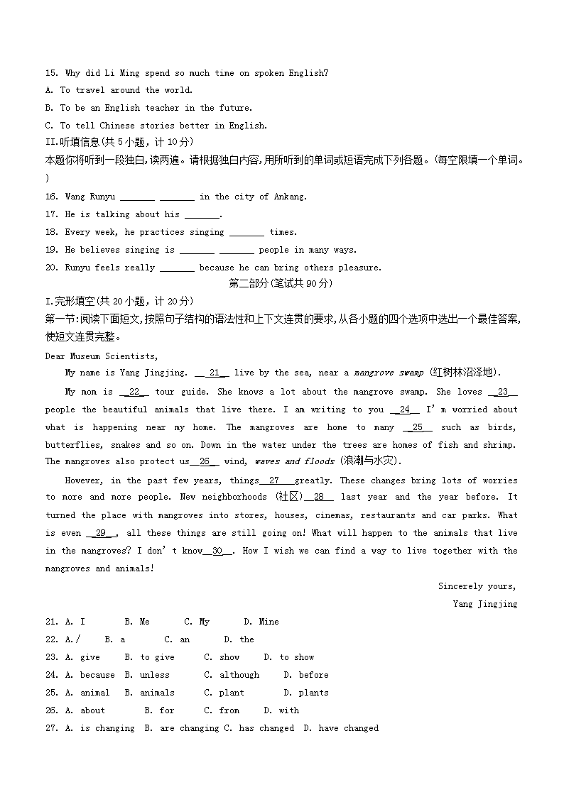 【文档名称】 2022年陕西铜川中考英语真题及答案B卷(Word版).doc