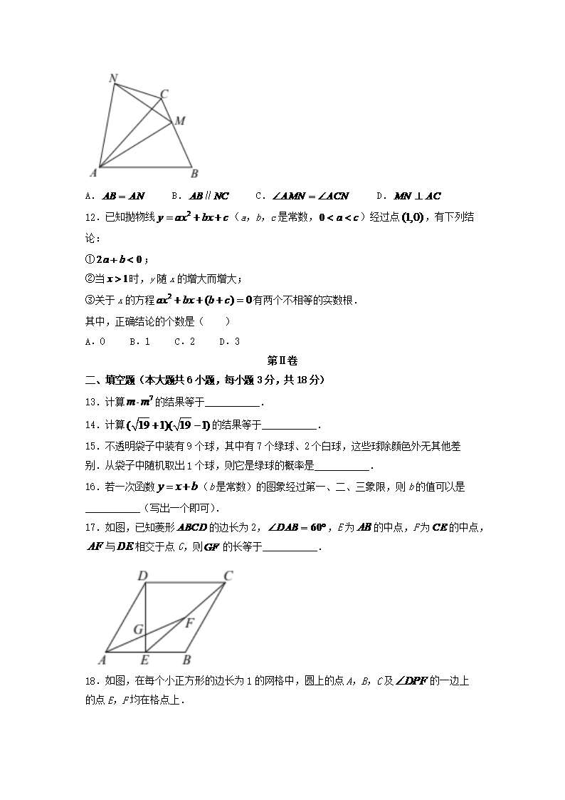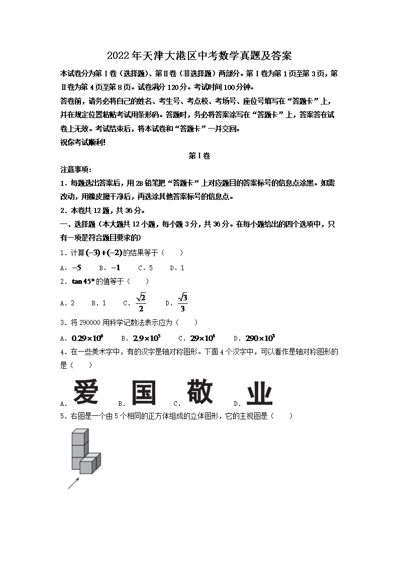 【文档名称】 2022年天津大港区中考数学真题及答案(Word版).doc