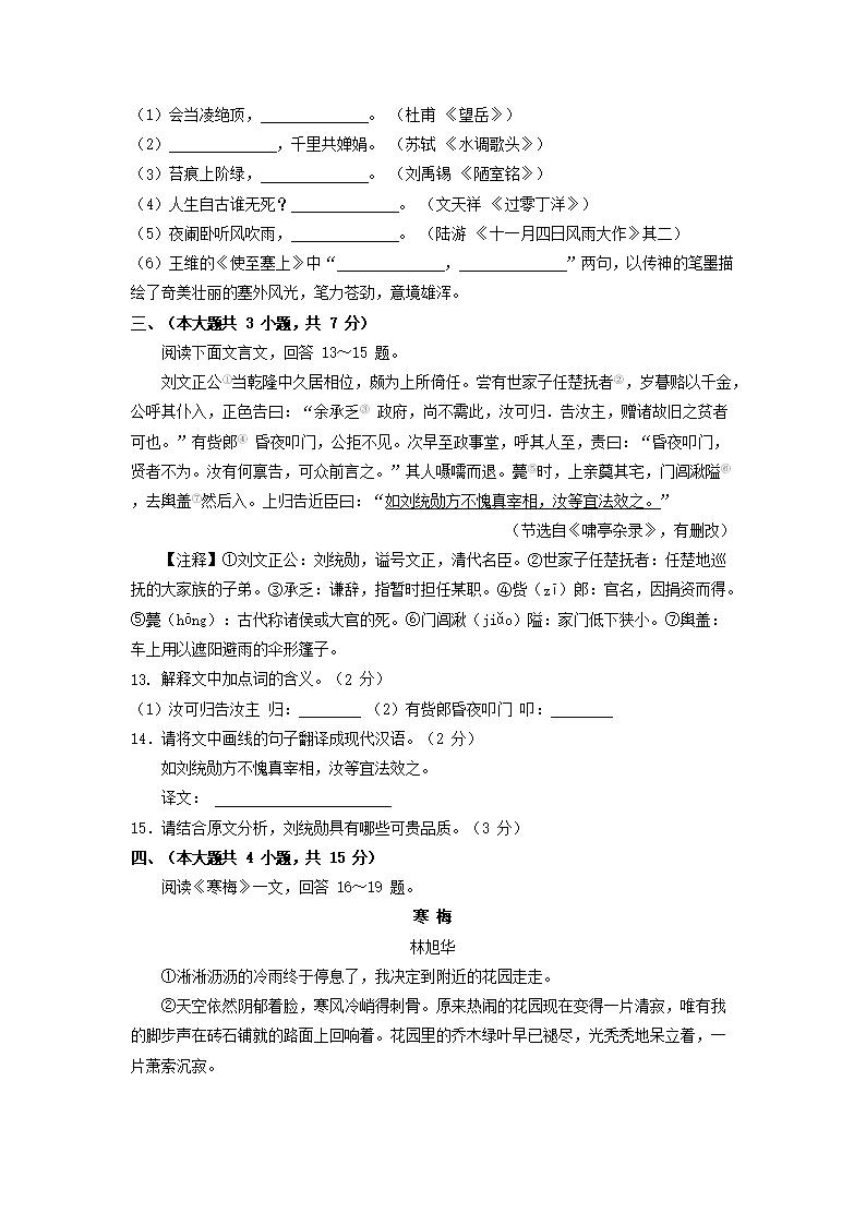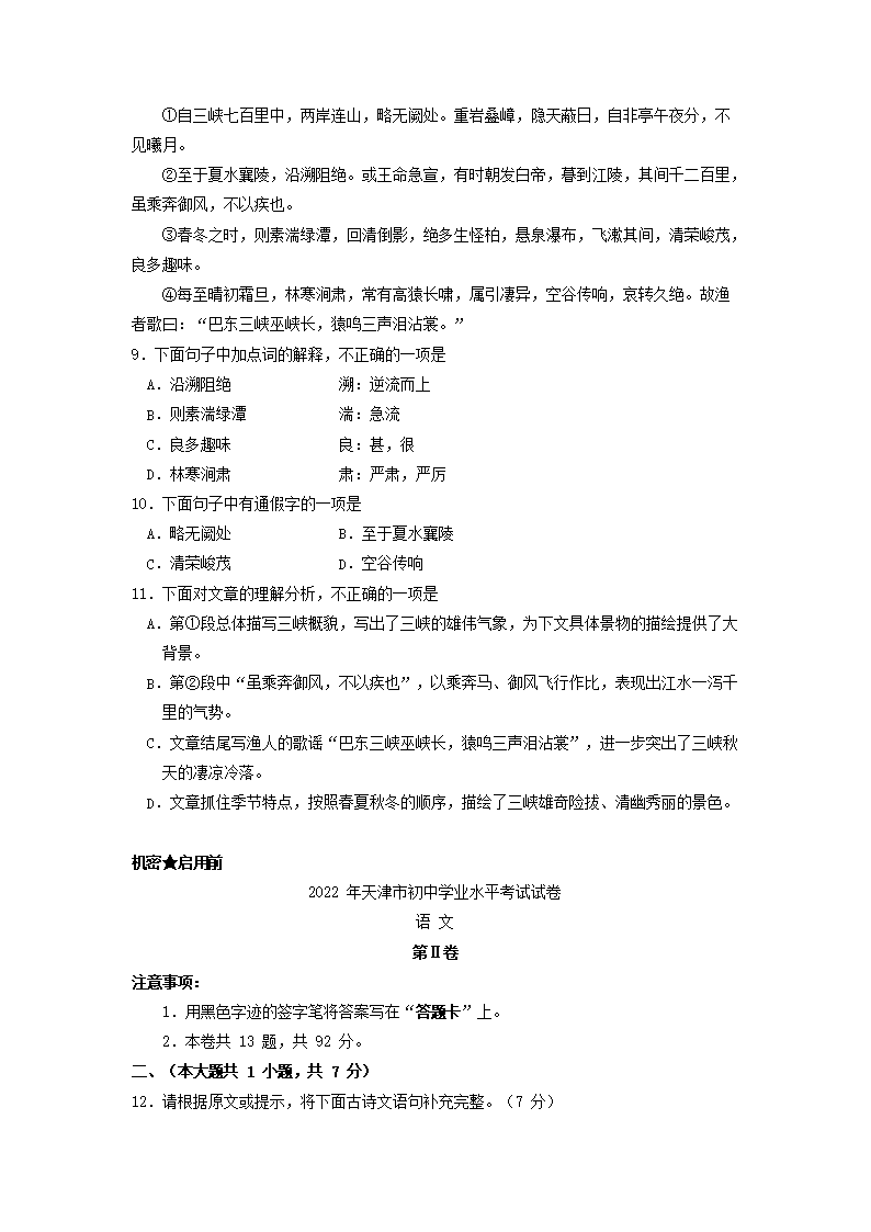 【文档预览】 无忧考网整理发布2022年天津大港区中考语文真题及答案(Word版),前五页预览如下: