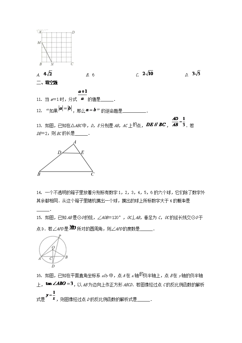 【文档名称】 2022年浙江湖州中考数学试题及答案(Word版).doc