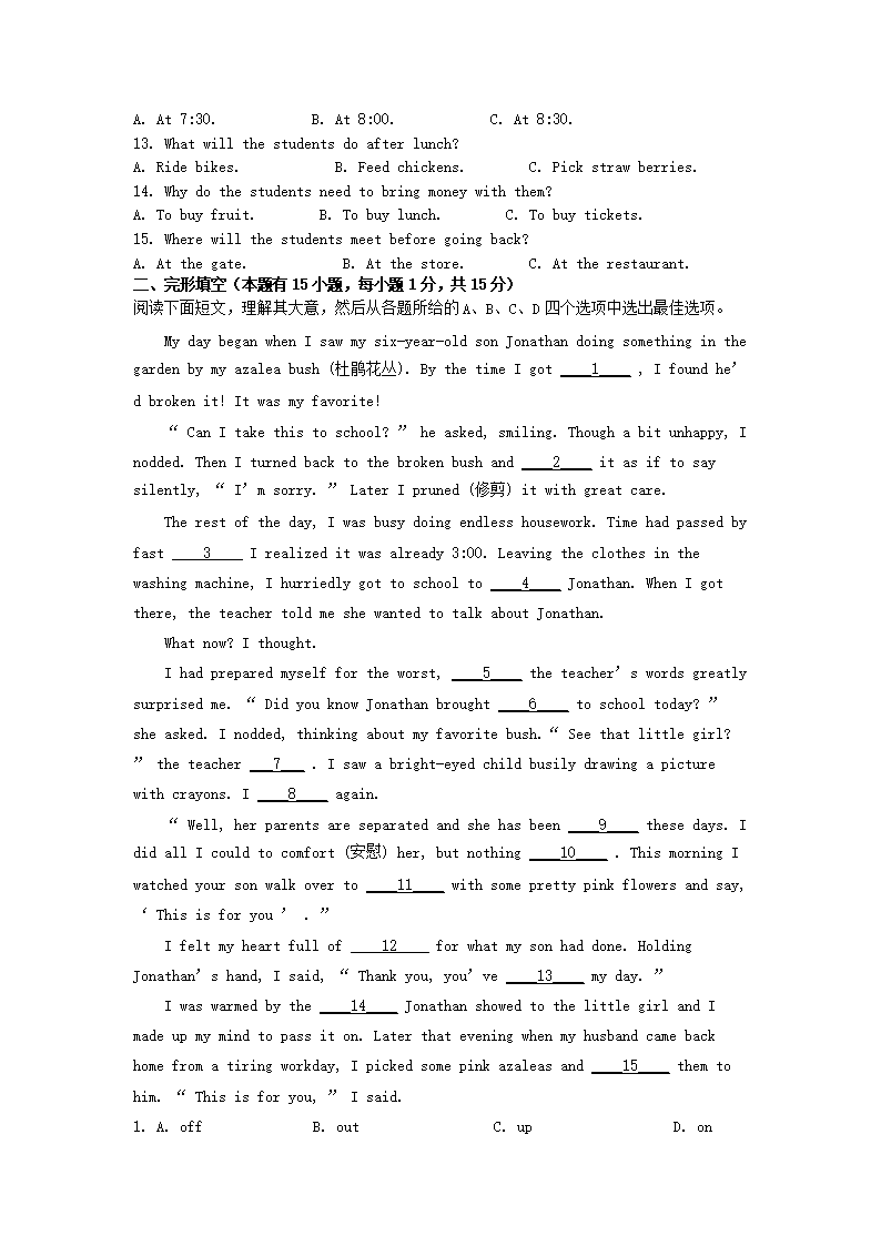 【文档预览】 无忧考网整理发布2022年浙江湖州中考英语试题及答案(Word版),前五页预览如下: