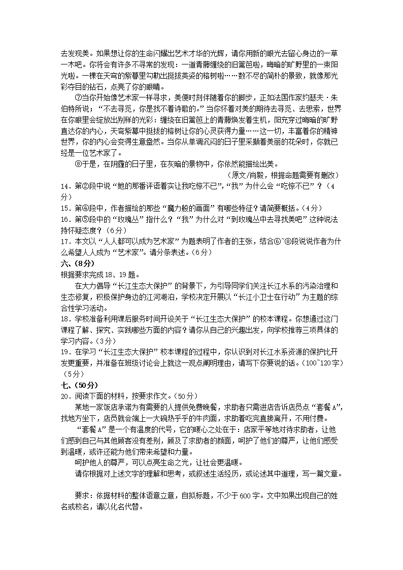 【文档名称】 2022年湖北武汉中考语文试题及答案(Word版).doc