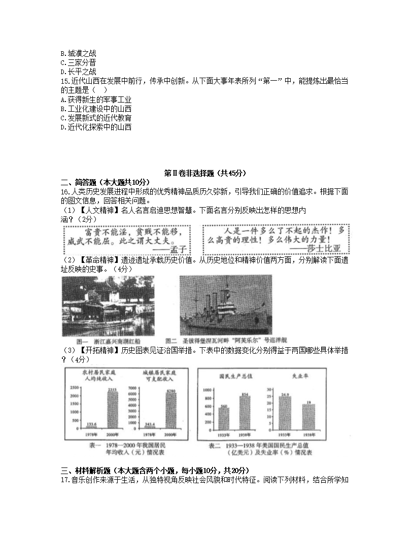 【文档名称】 2022年山西晋城中考文科综合试题及答案(Word版).doc