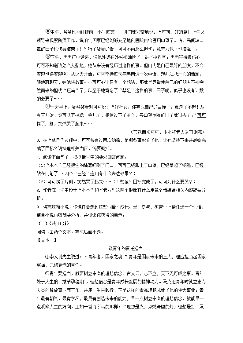 【文档预览】 无忧考网整理发布2022年河南鹤壁中考语文试题及答案(Word版),前五页预览如下: