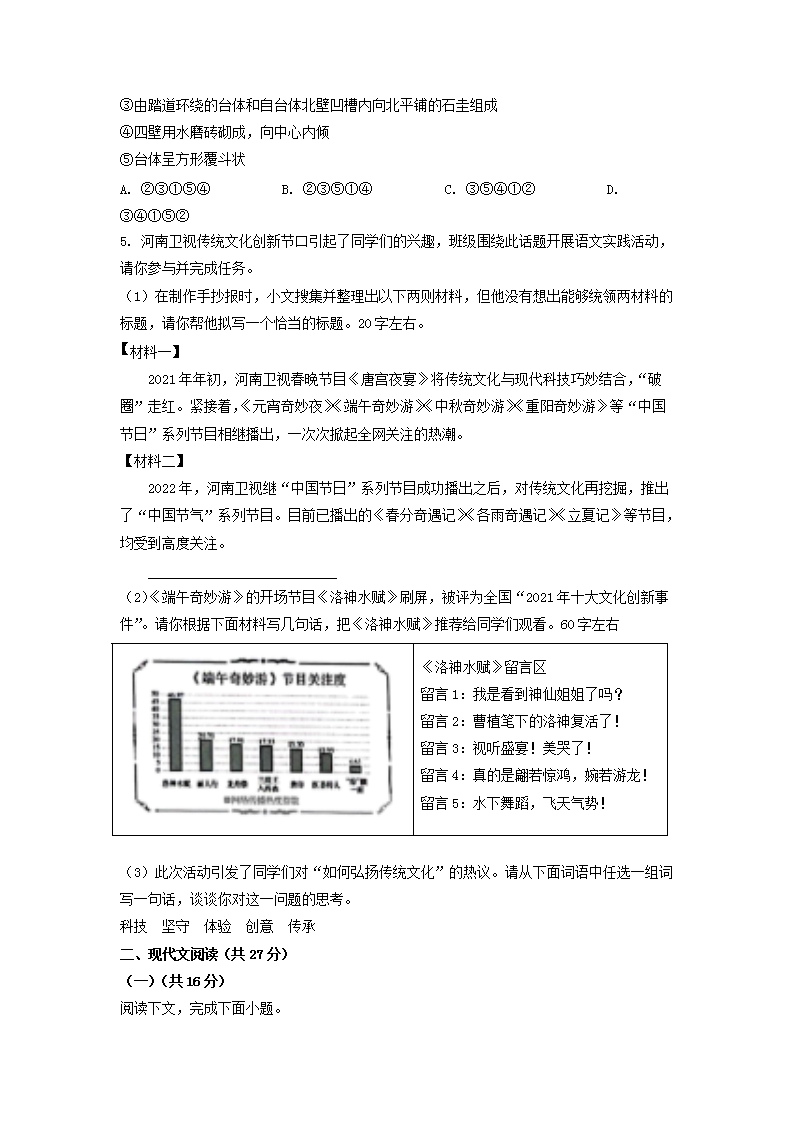 【文档名称】 2022年河南鹤壁中考语文试题及答案(Word版).doc