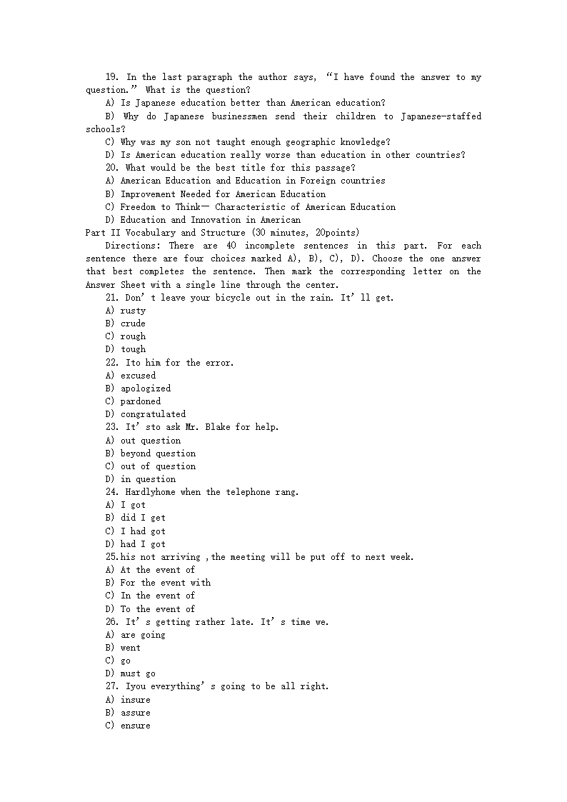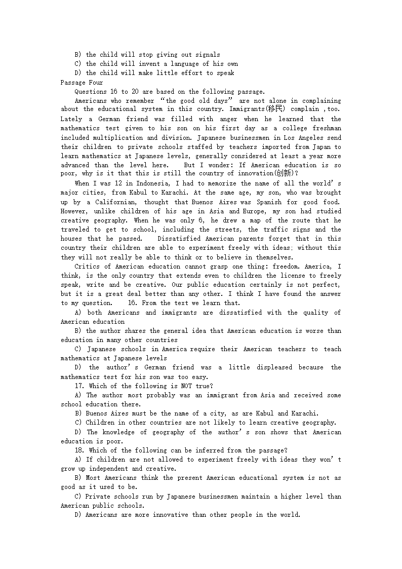 【文档预览】 无忧考网整理发布2015年山东省学士学位英语真题及答案(Word版),前五页预览如下: