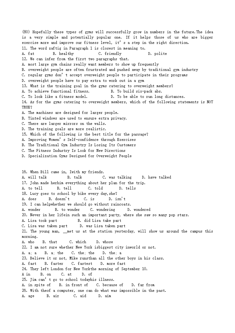 【文档预览】 无忧考网整理发布2018年山东成人学士学位英语考试真题及答案(Word版),前五页预览如下: