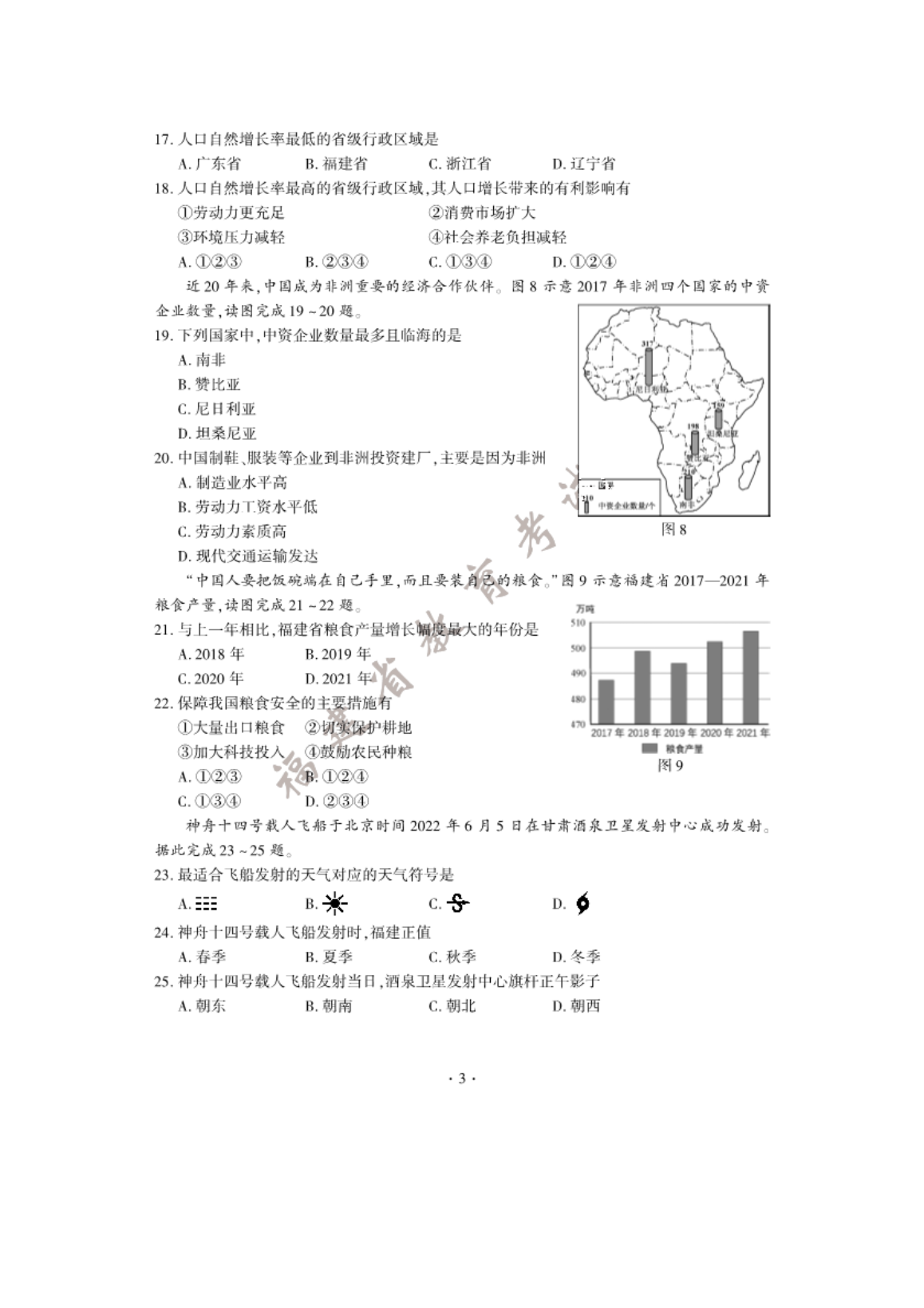 【文档预览】 无忧考网整理发布2022年福建福州中考地理真题及答案(图片版),前五页预览如下: