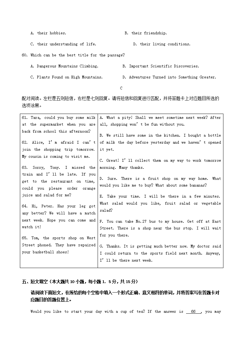 【文档名称】 2022年广东韶关中考英语真题及答案(Word版).doc