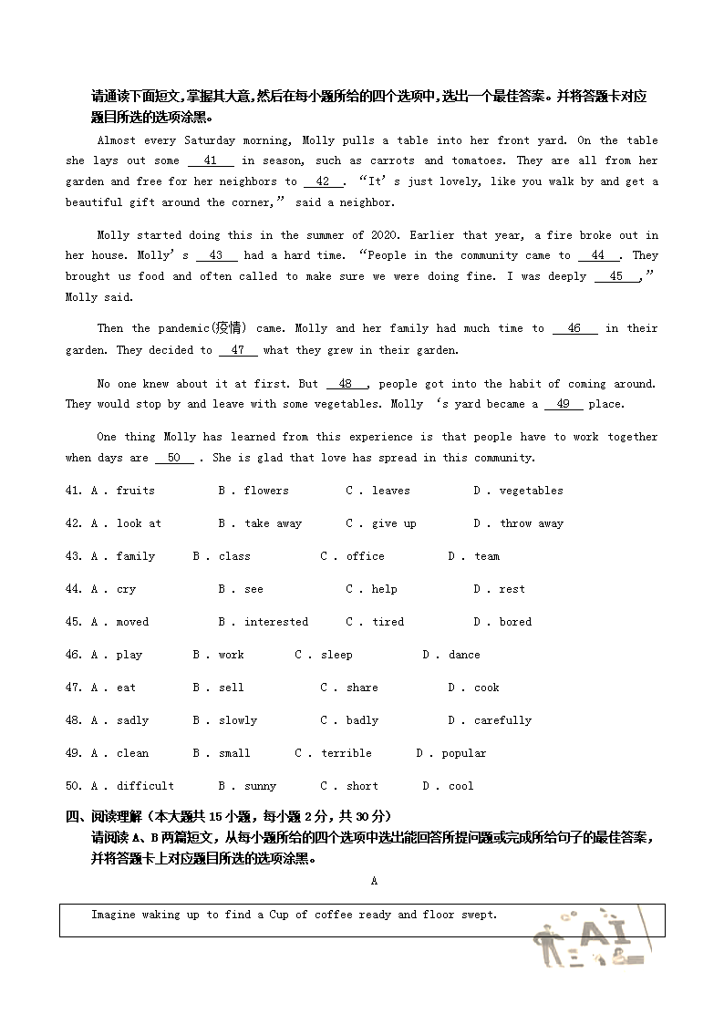 【文档预览】 无忧考网整理发布2022年广东韶关中考英语真题及答案(Word版),前五页预览如下: