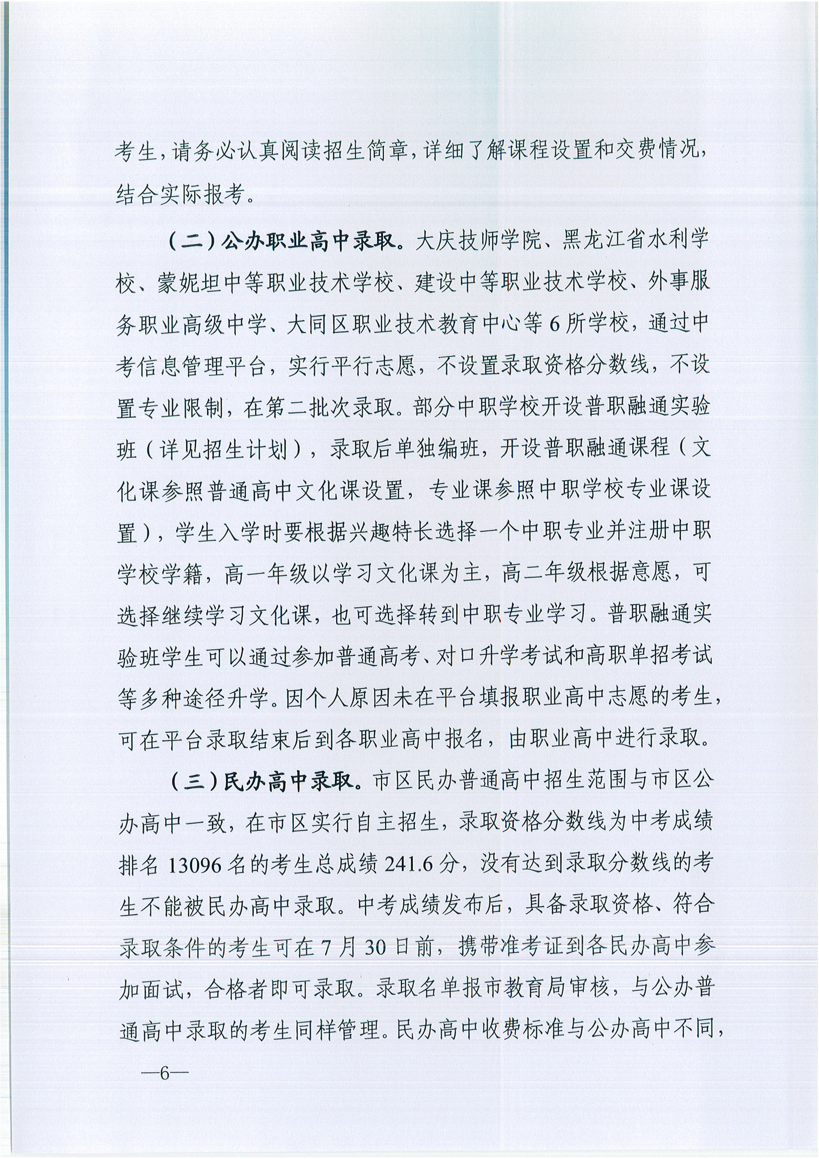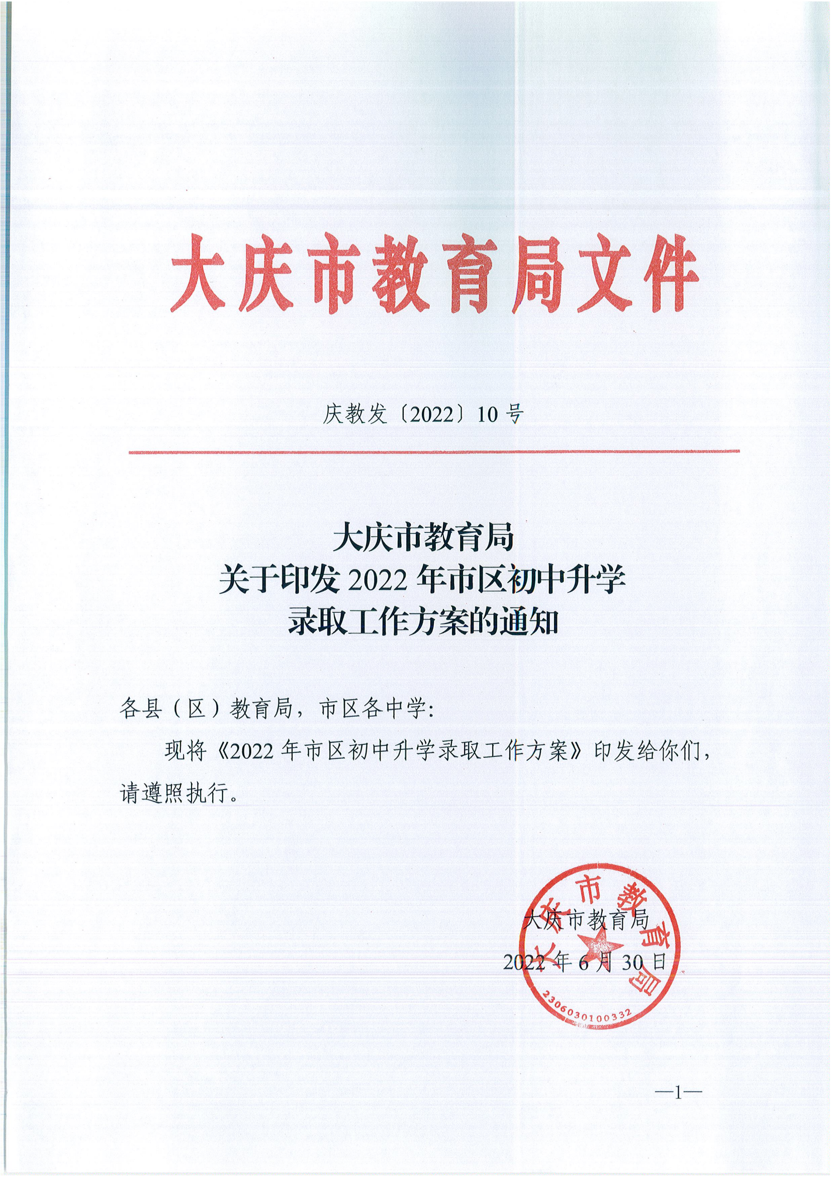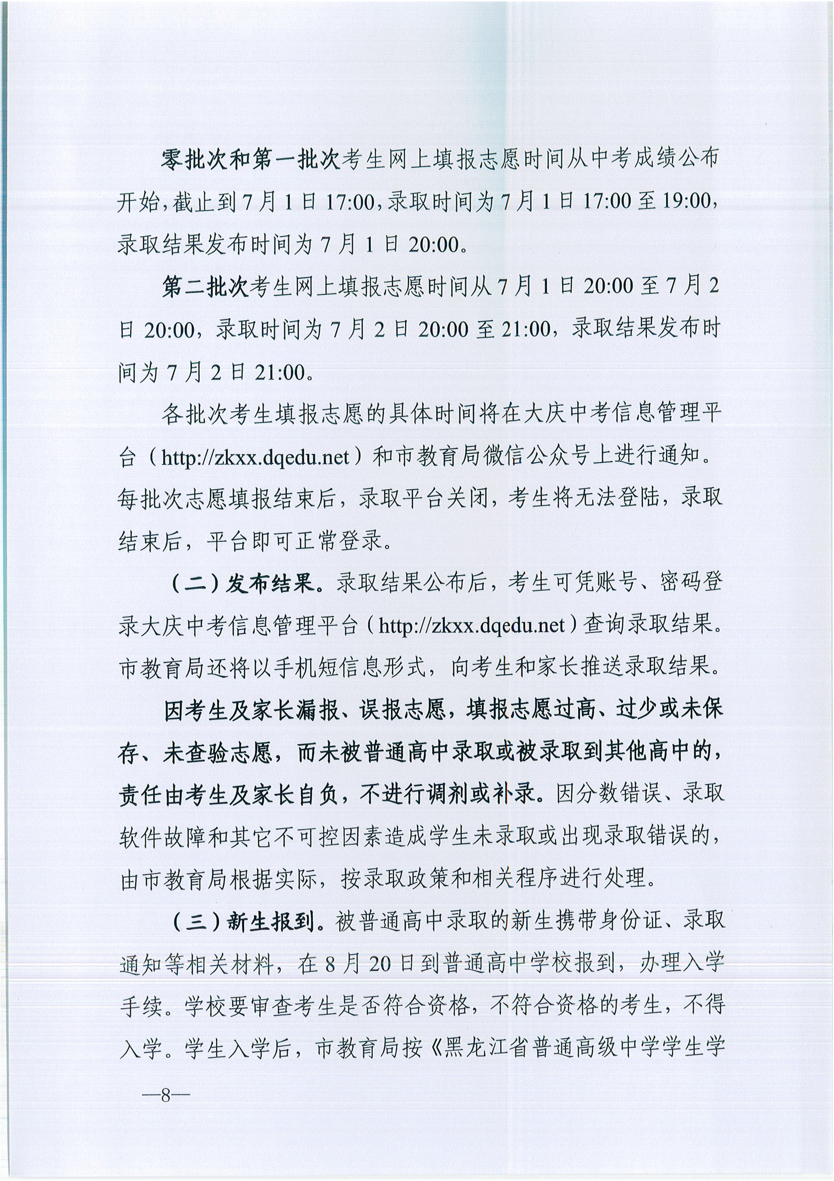 2022年黑龙江大庆初中升学录取工作方案的通知