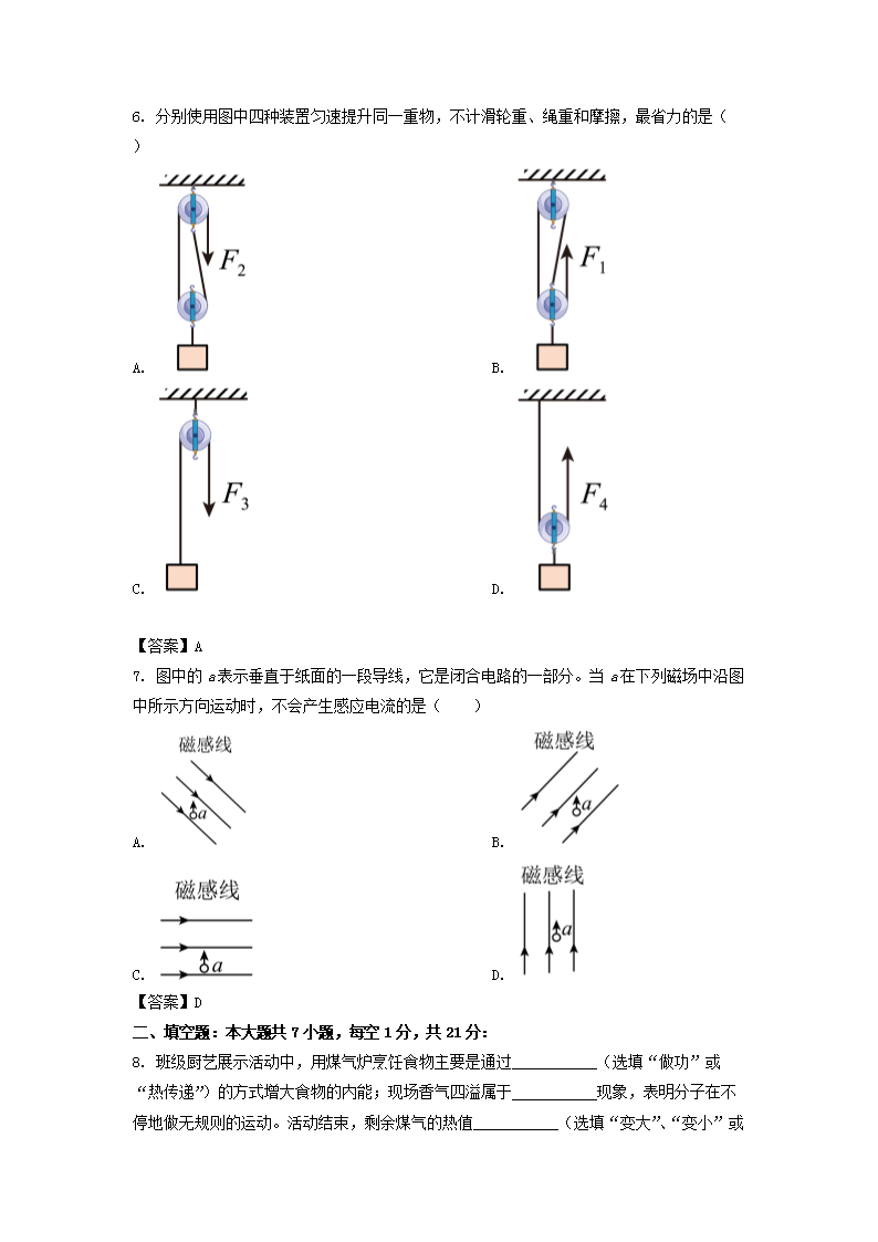 【文档名称】 2022年广东韶关中考物理真题及答案(Word版).doc