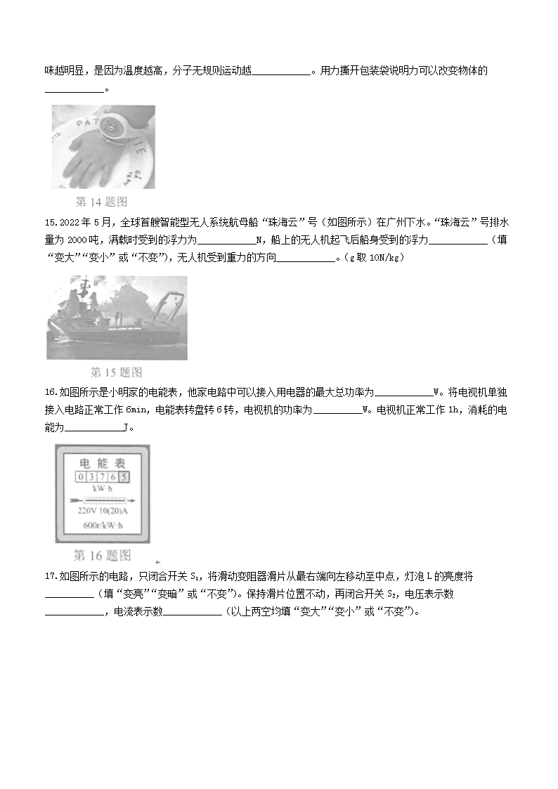 【文档名称】 2022年辽宁辽阳中考物理真题及答案(Word版).doc