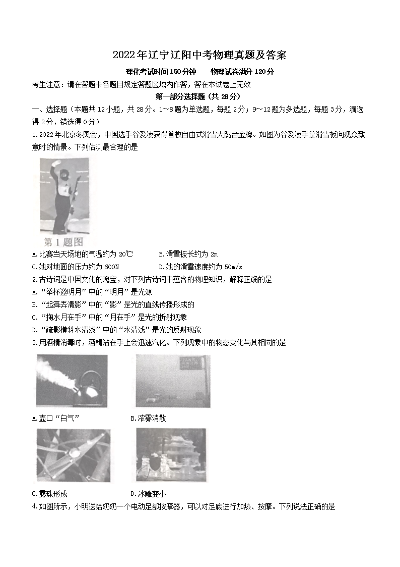 【文档预览】 无忧考网整理发布2022年辽宁辽阳中考物理真题及答案(Word版),前五页预览如下: