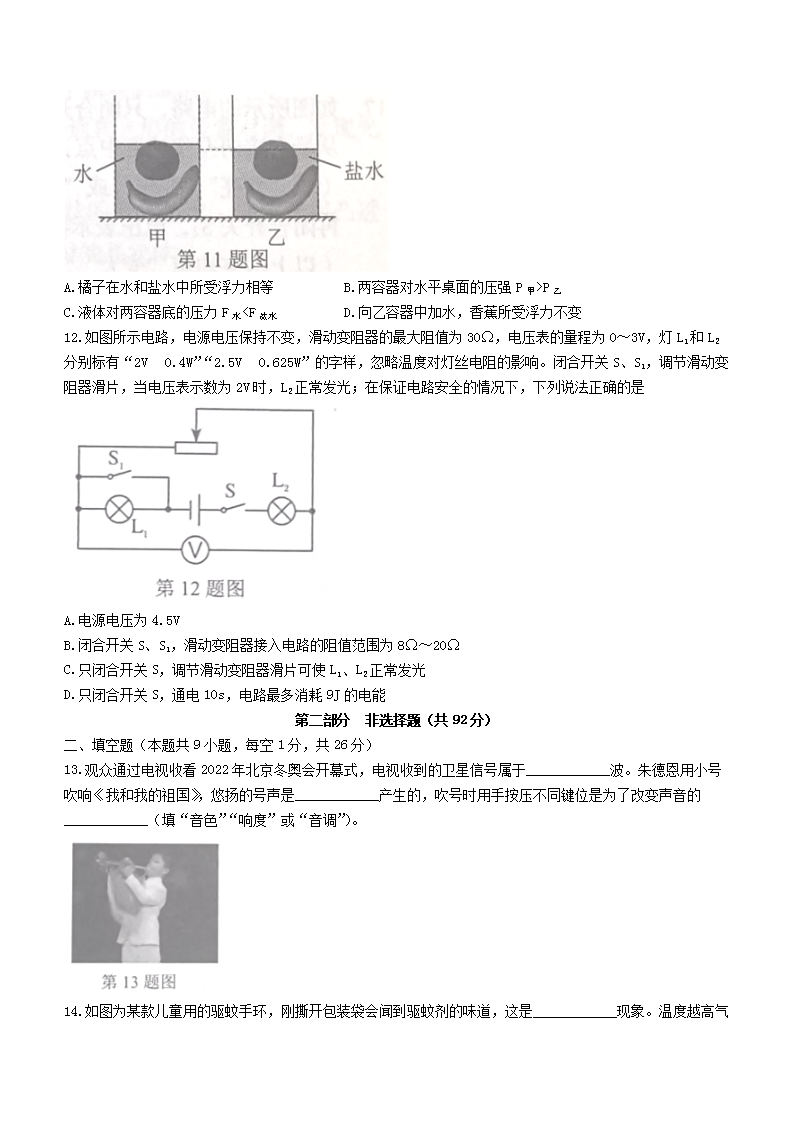 【文档预览】 无忧考网整理发布2022年辽宁铁岭中考物理真题及答案(Word版),前五页预览如下: