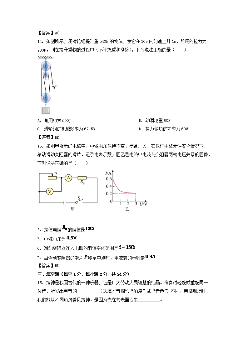 【文档预览】 无忧考网整理发布2022年黑龙江伊春中考物理真题及答案(Word版),前五页预览如下: