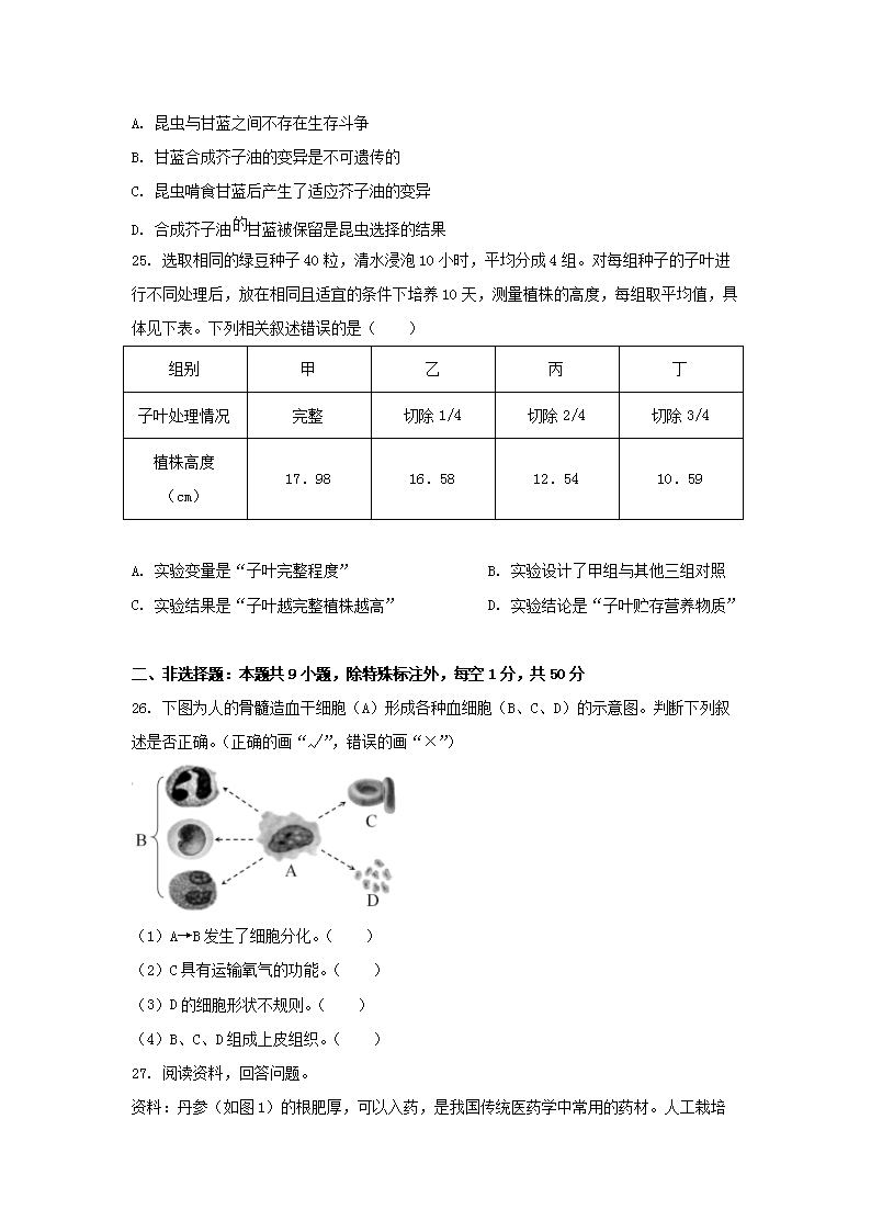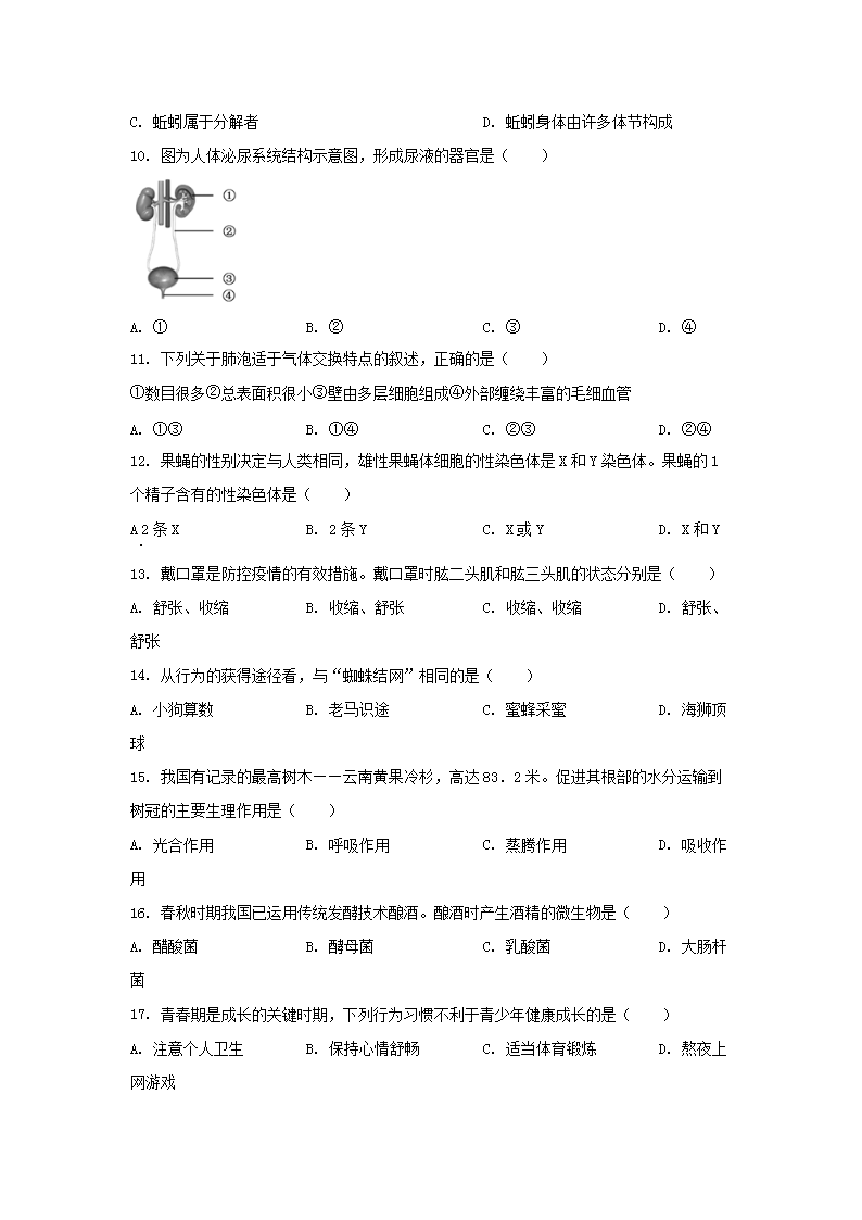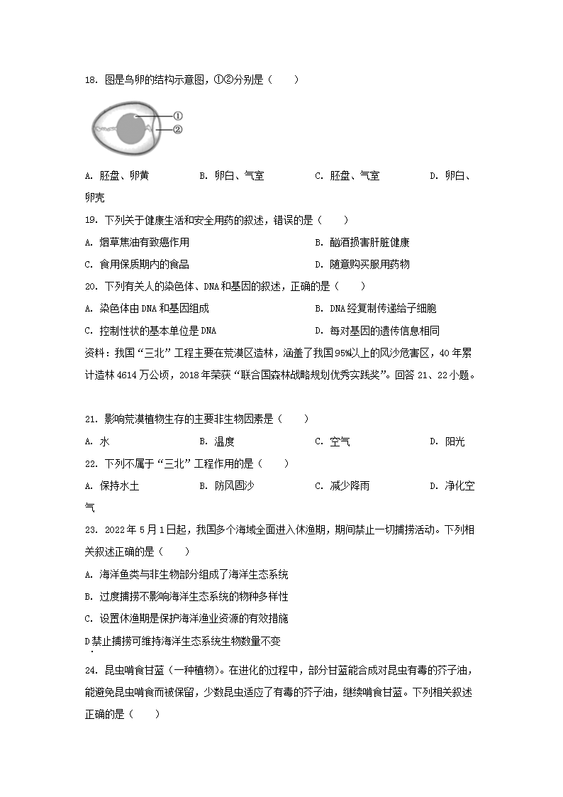 【文档名称】 2022年福建福州中考生物试题及答案(Word版).doc