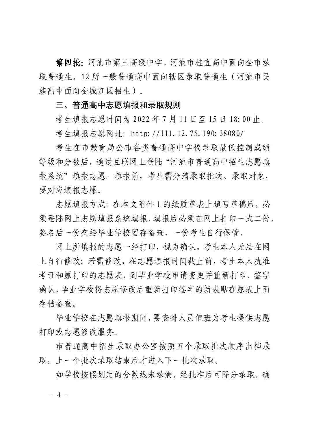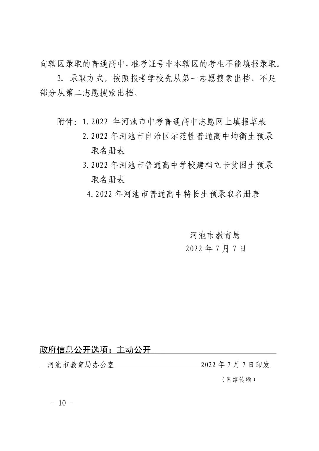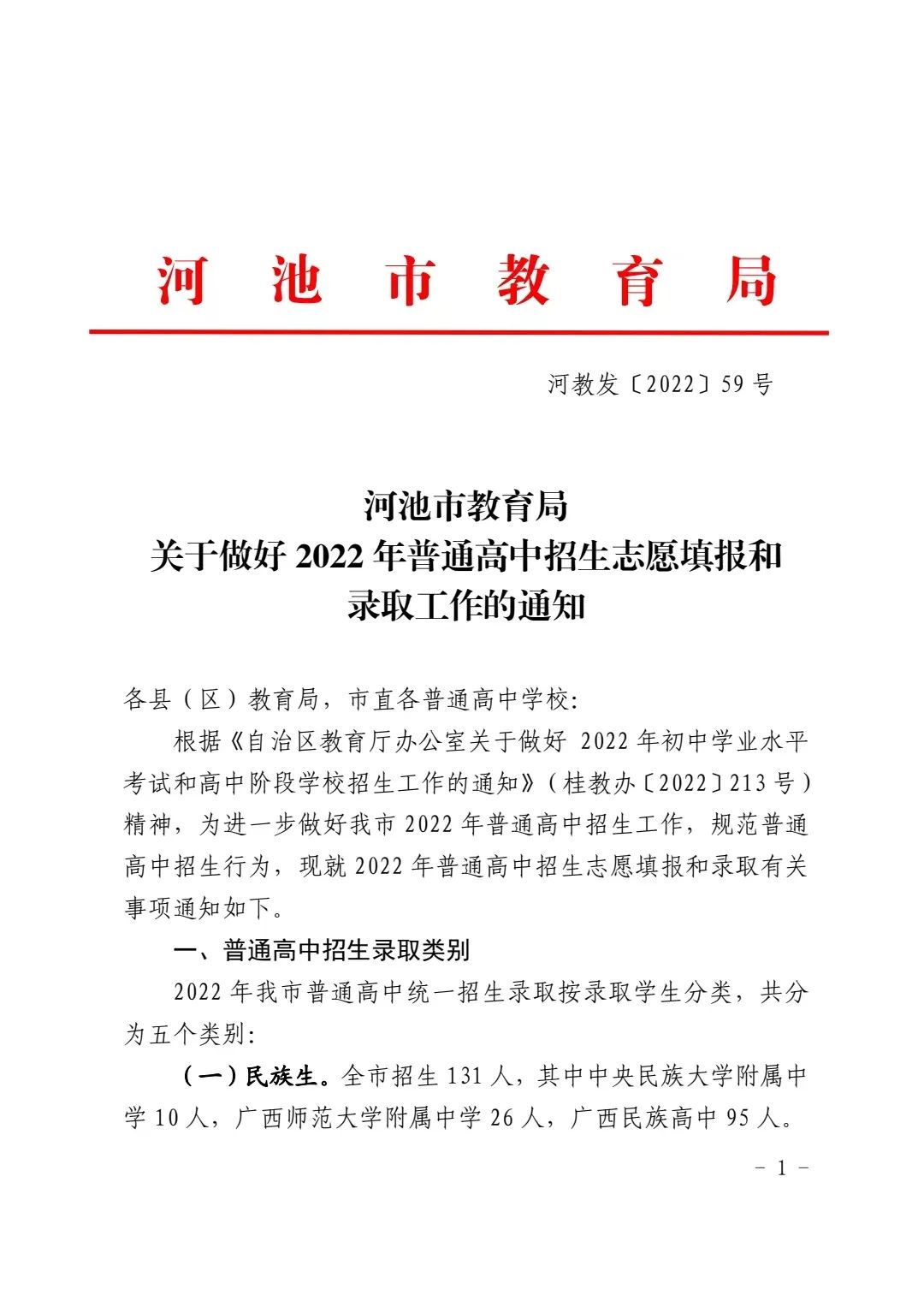 关于做好2022年广西河池普通高中招生志愿填报和录取工作的通知