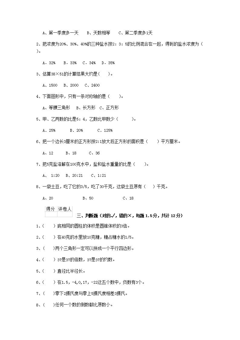 【文档预览】 无忧考网整理发布2020年江苏连云港小升初数学真题及答案(Word版),前五页预览如下: