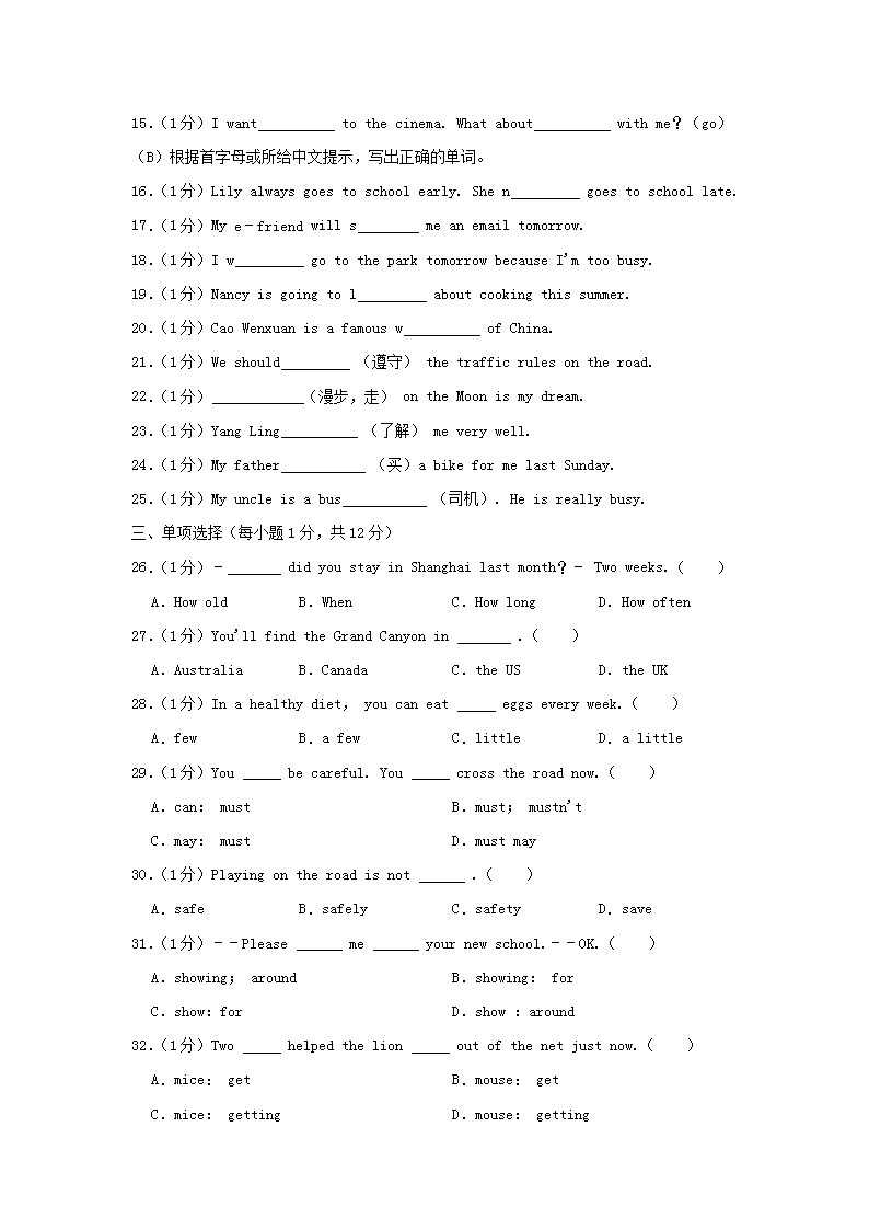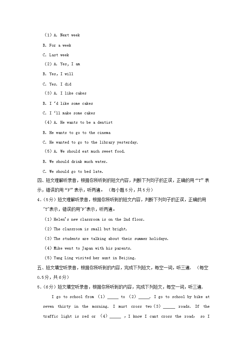 【文档预览】 无忧考网整理发布2020年江苏苏州小升初英语真题及答案(Word版),前五页预览如下: