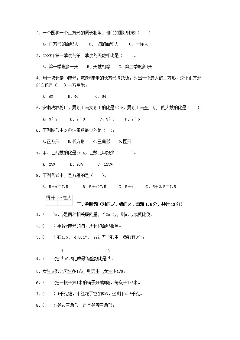 【文档预览】 无忧考网整理发布2020年江苏徐州小升初数学真题及答案(Word版),前五页预览如下:
