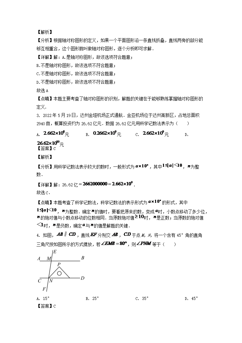 【文档名称】 2022年四川达州中考数学真题及答案(Word版).doc