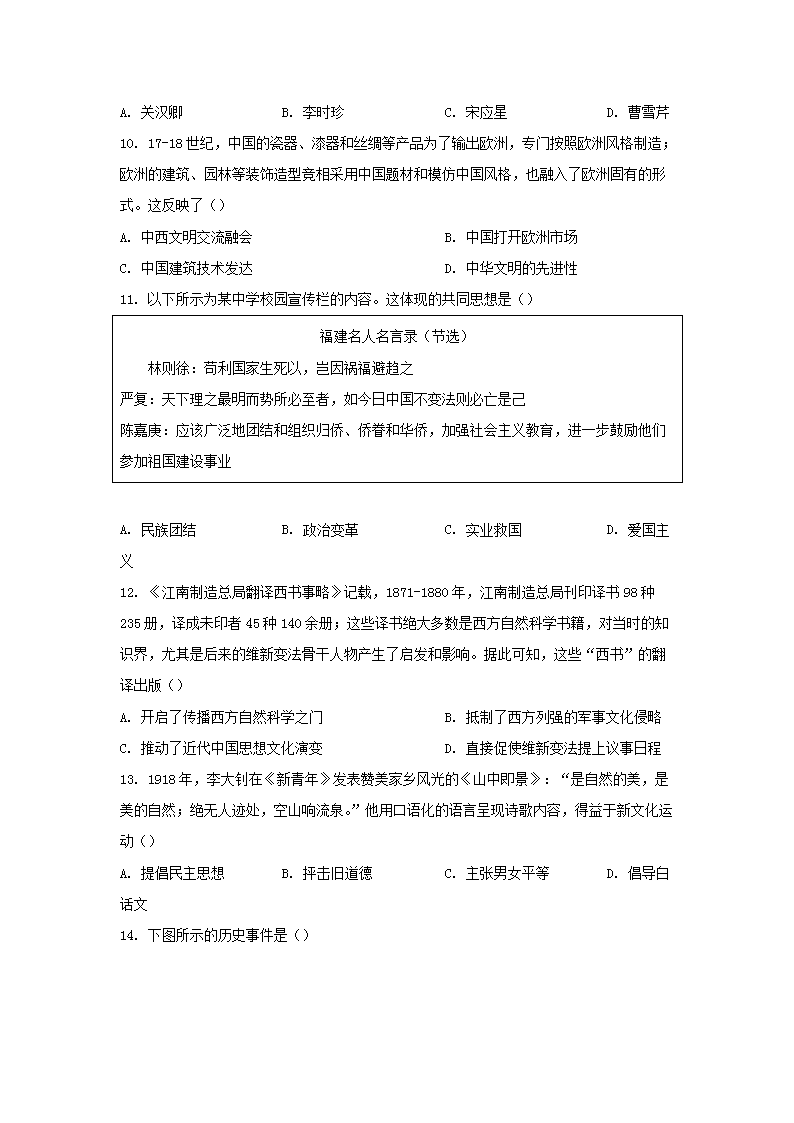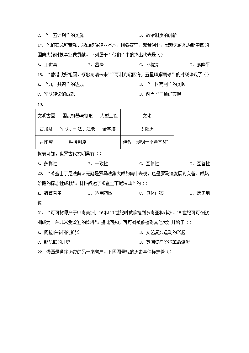 【文档名称】 2022年福建漳州中考历史试题及答案(Word版).doc