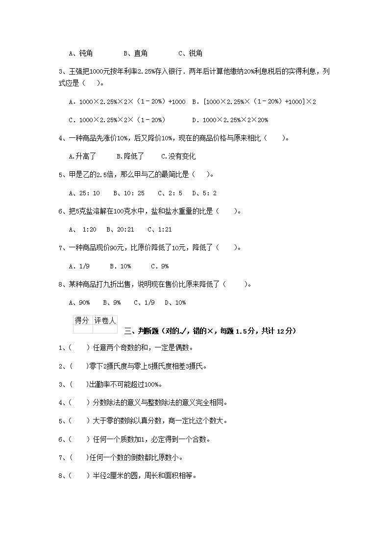 【文档预览】 无忧考网整理发布2020年江苏扬州小升初数学真题及答案(Word版),前五页预览如下: