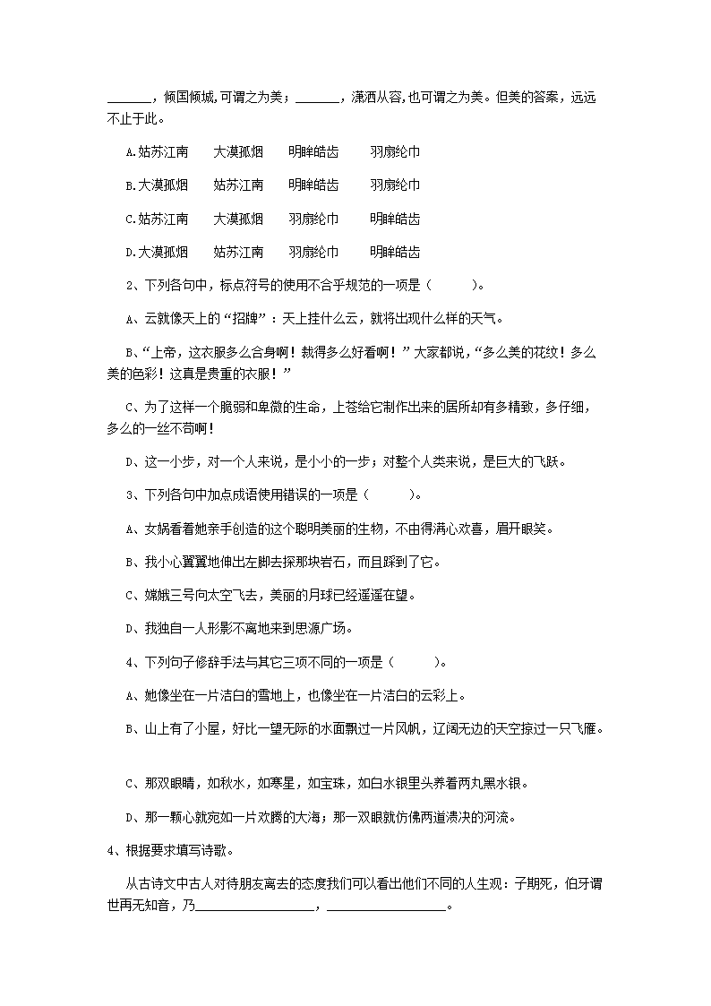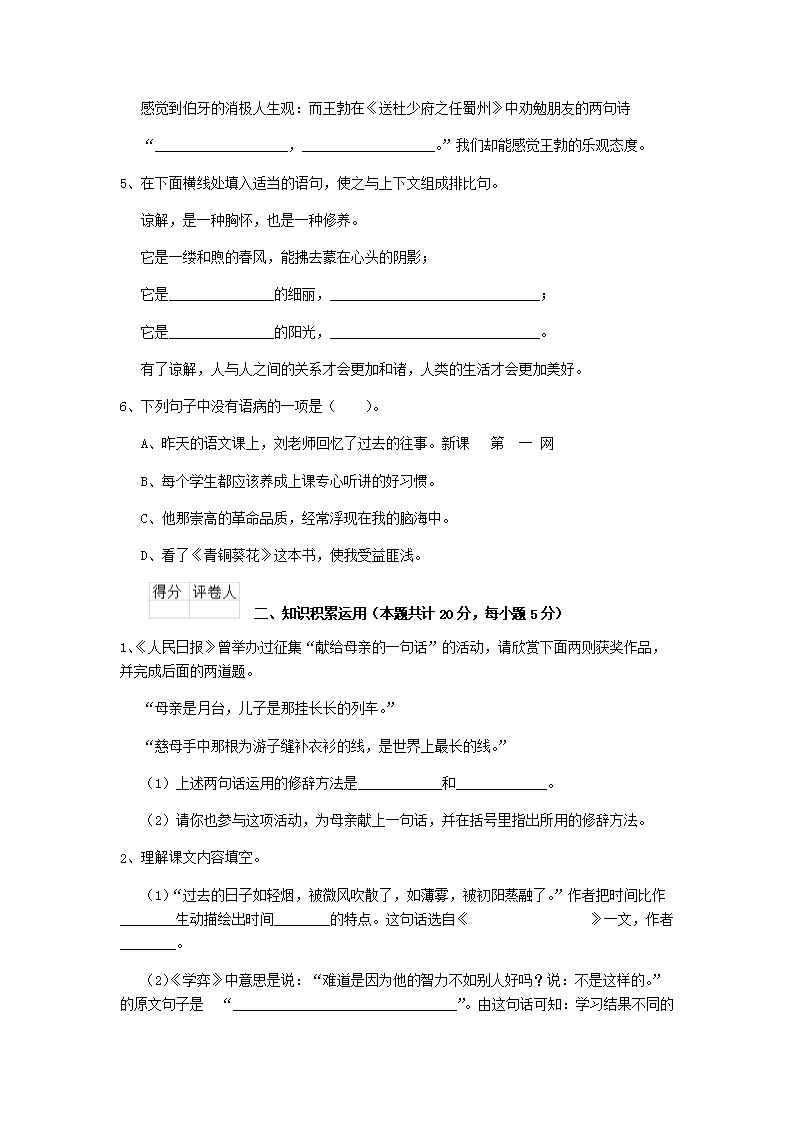 【文档预览】 无忧考网整理发布2020年云南红河小升初语文真题及答案(Word版),前五页预览如下: