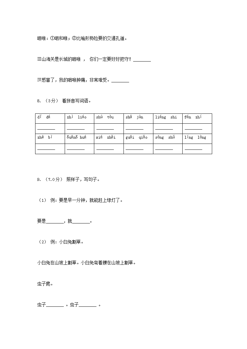 【文档名称】 2020年云南丽江小升初语文真题及答案(Word版).doc