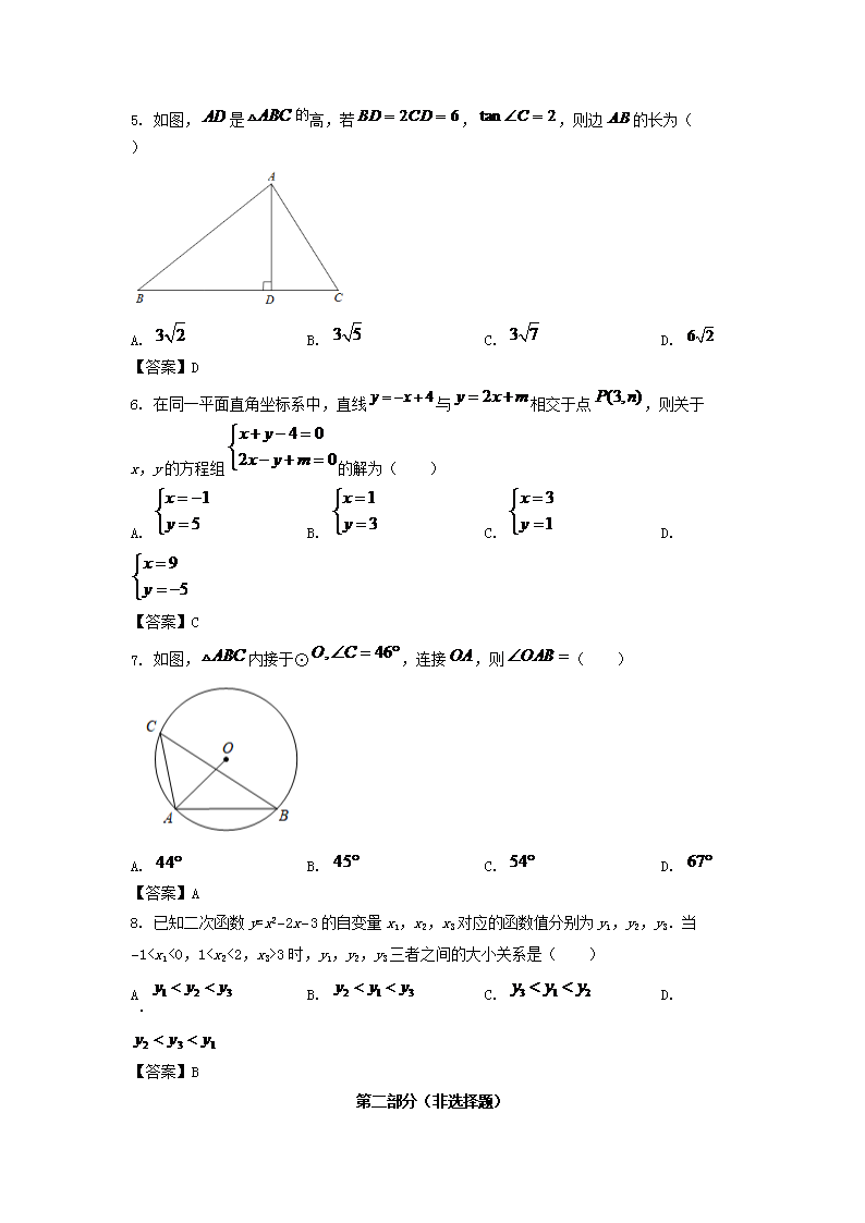 【文档预览】 无忧考网整理发布2022年陕西铜川中考数学真题及答案(Word版),前五页预览如下: