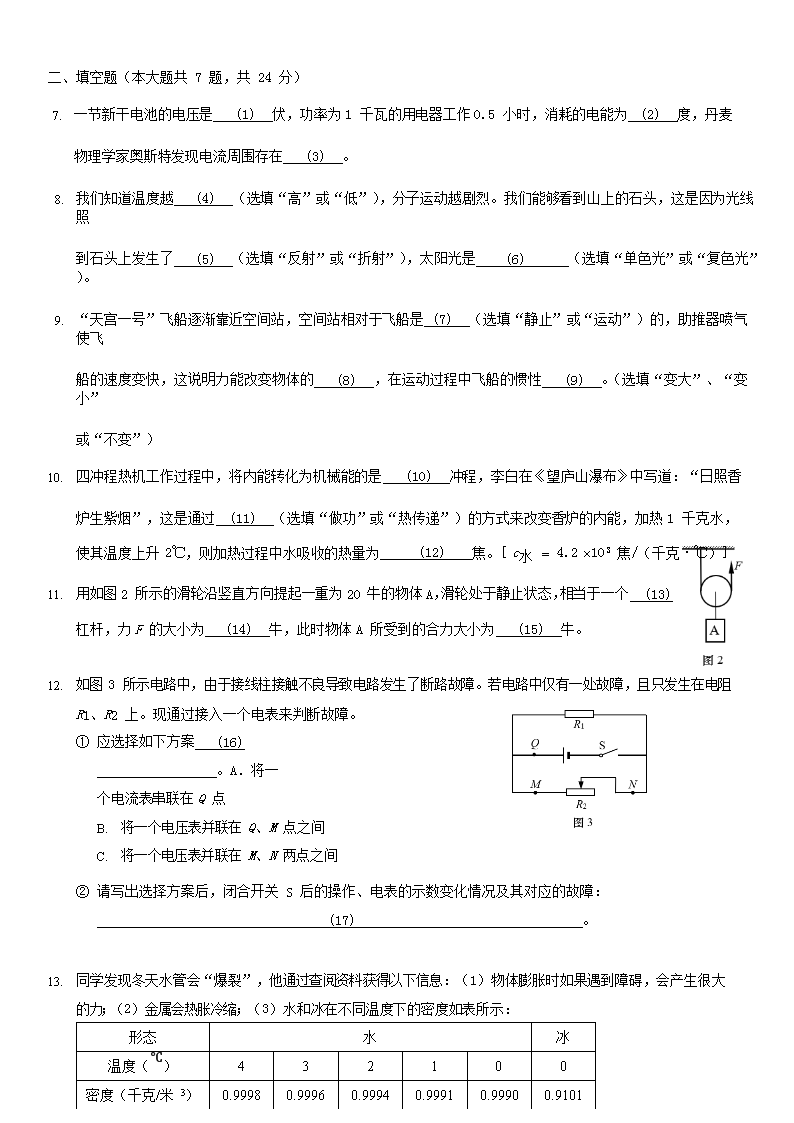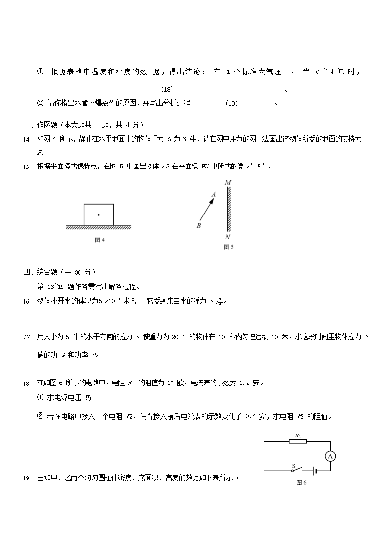 【文档名称】 2022年上海宝山中考物理试题及答案(Word版).doc