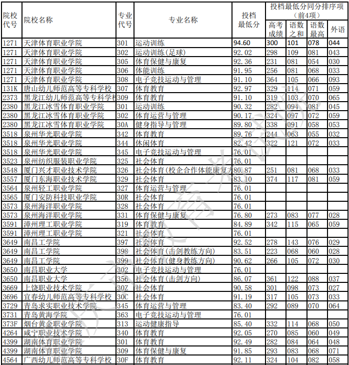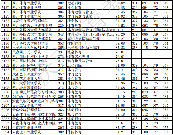 2022年重庆市普通高校招生体育高职专科批-体育类-平行志愿信息表