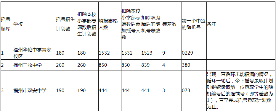 2023年福建福州五城区第二志愿数超剩余计划数的民办初中摇号录取信息公布