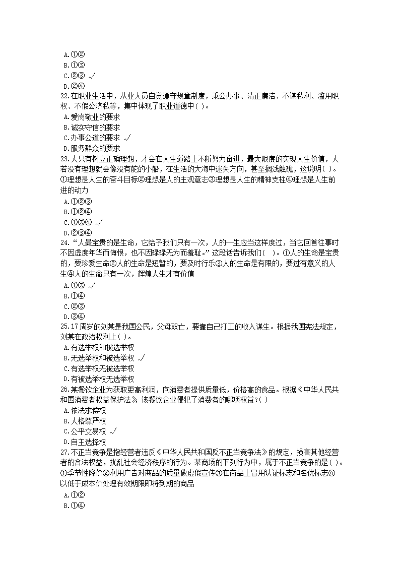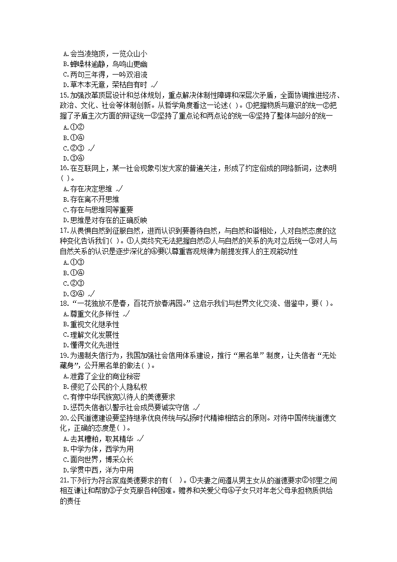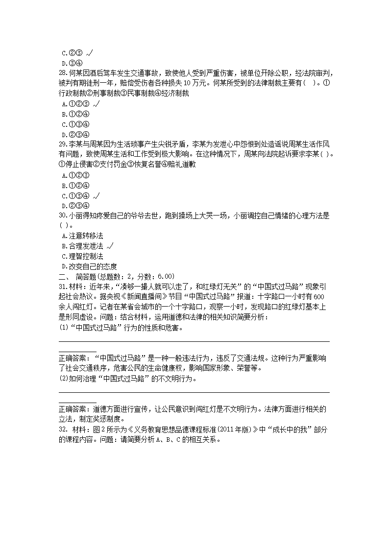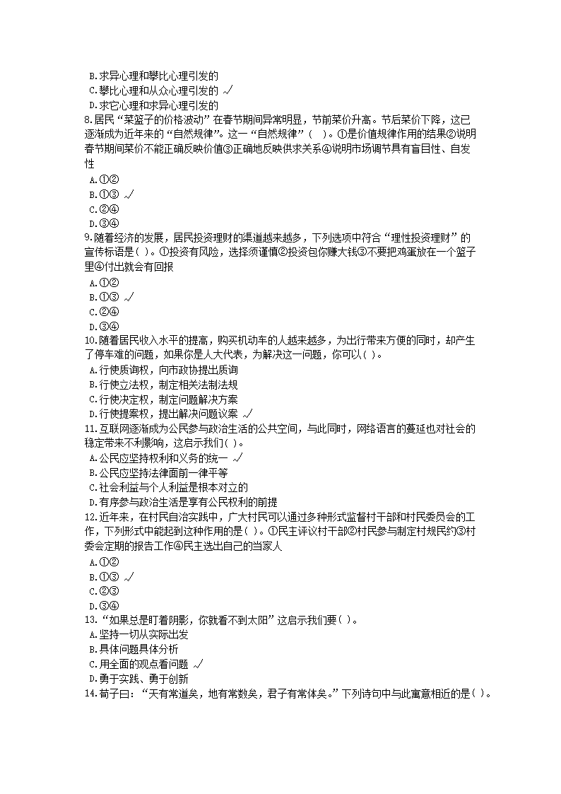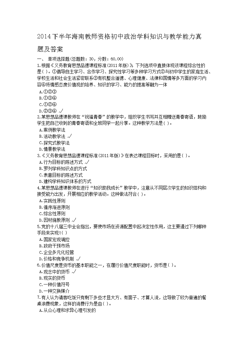 【文档名称】 2014下半年海南教师资格初中政治学科知识与教学能力真题及答案(Word版).doc