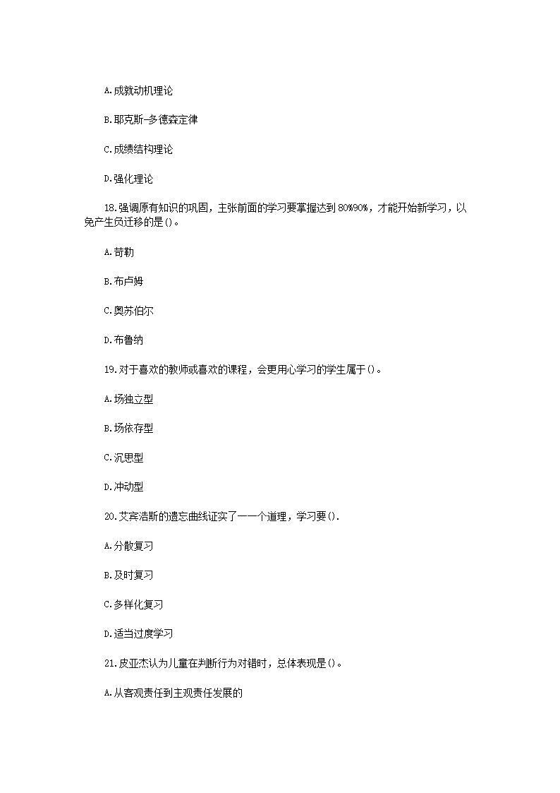 【文档预览】 无忧考网整理发布2019年河南郑州新密市教师招聘考试小学教育基础知识真题及答案(Word版),前五页预览如下: