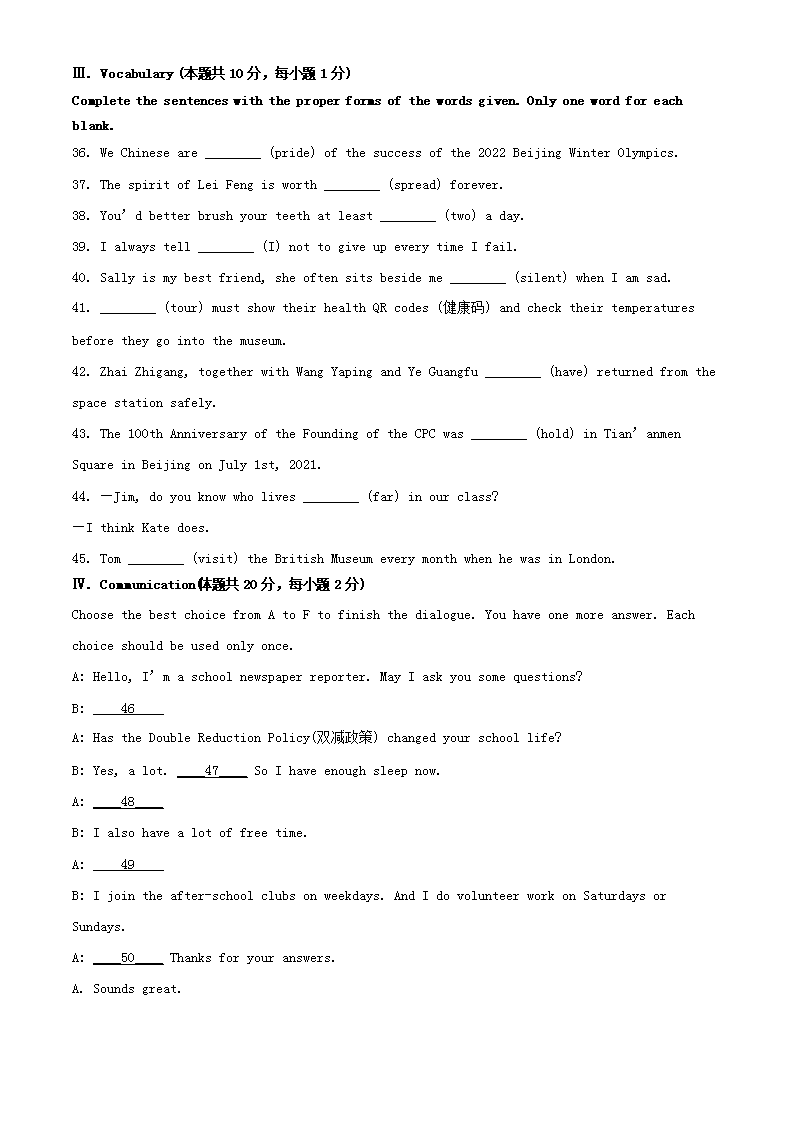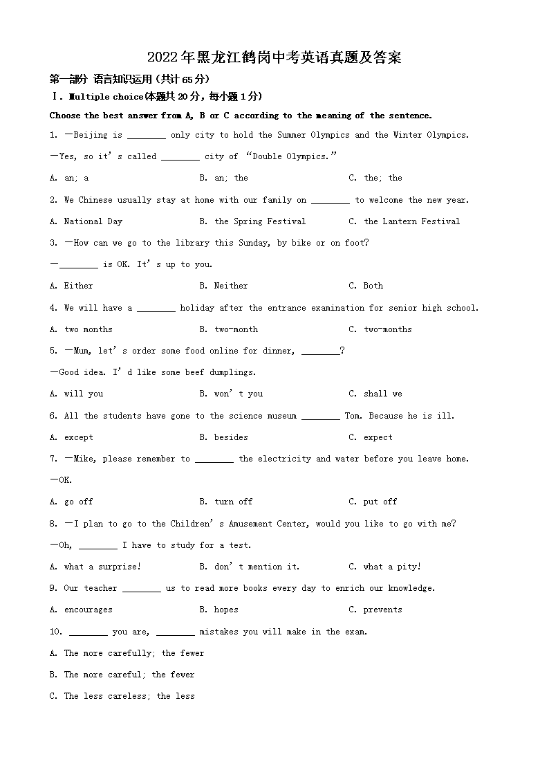 【文档名称】 2022年黑龙江鹤岗中考英语真题及答案(Word版).doc