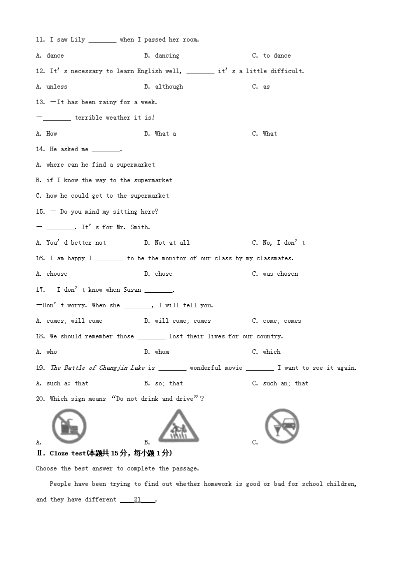 【文档预览】 无忧考网整理发布2022年黑龙江佳木斯中考英语真题及答案(Word版),前五页预览如下: