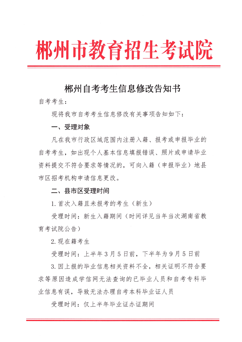 2022年湖南郴州自考考生信息修改告知书.docx