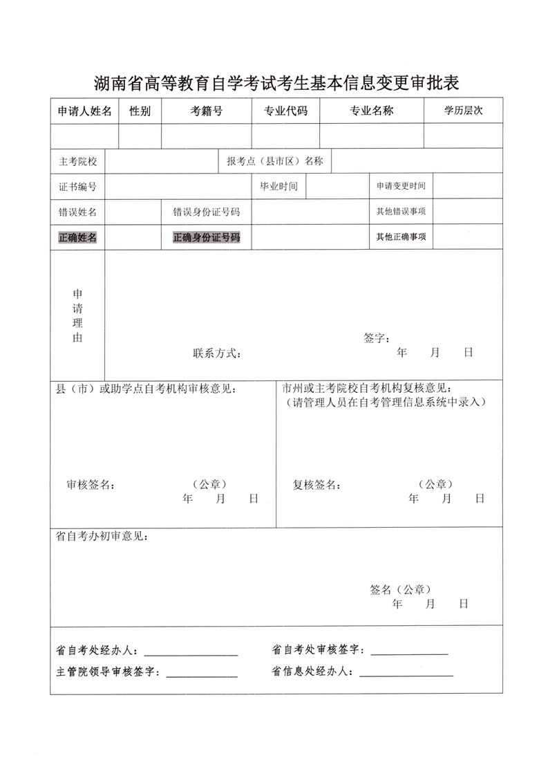 2022年湖南郴州自考考生信息修改告知书