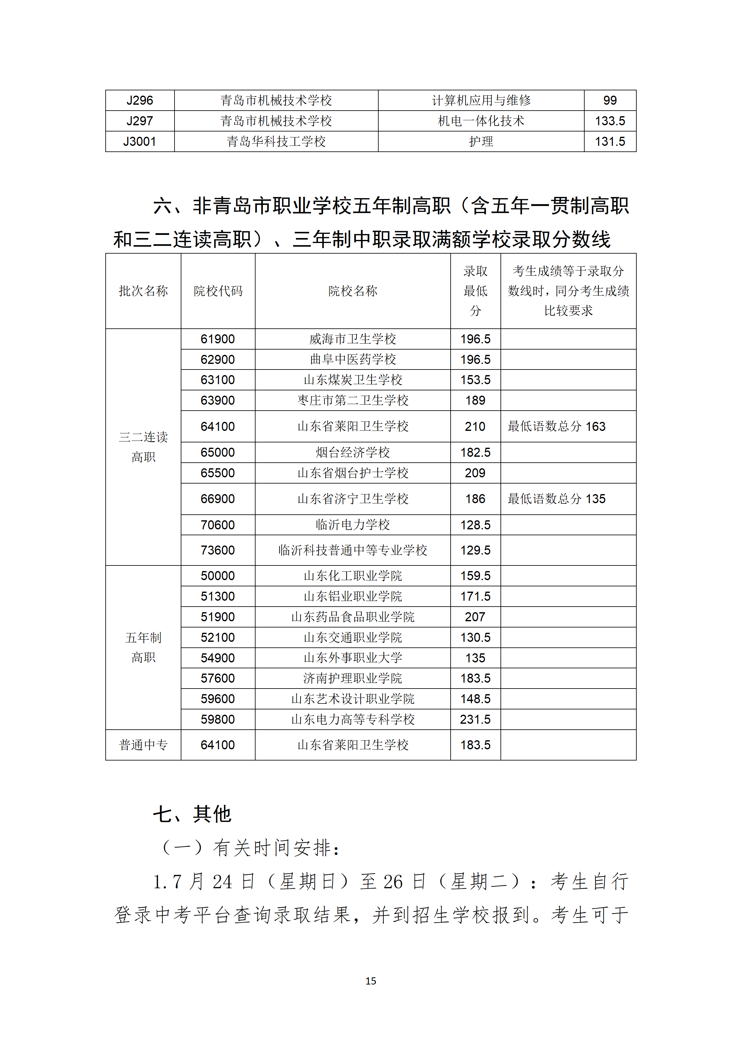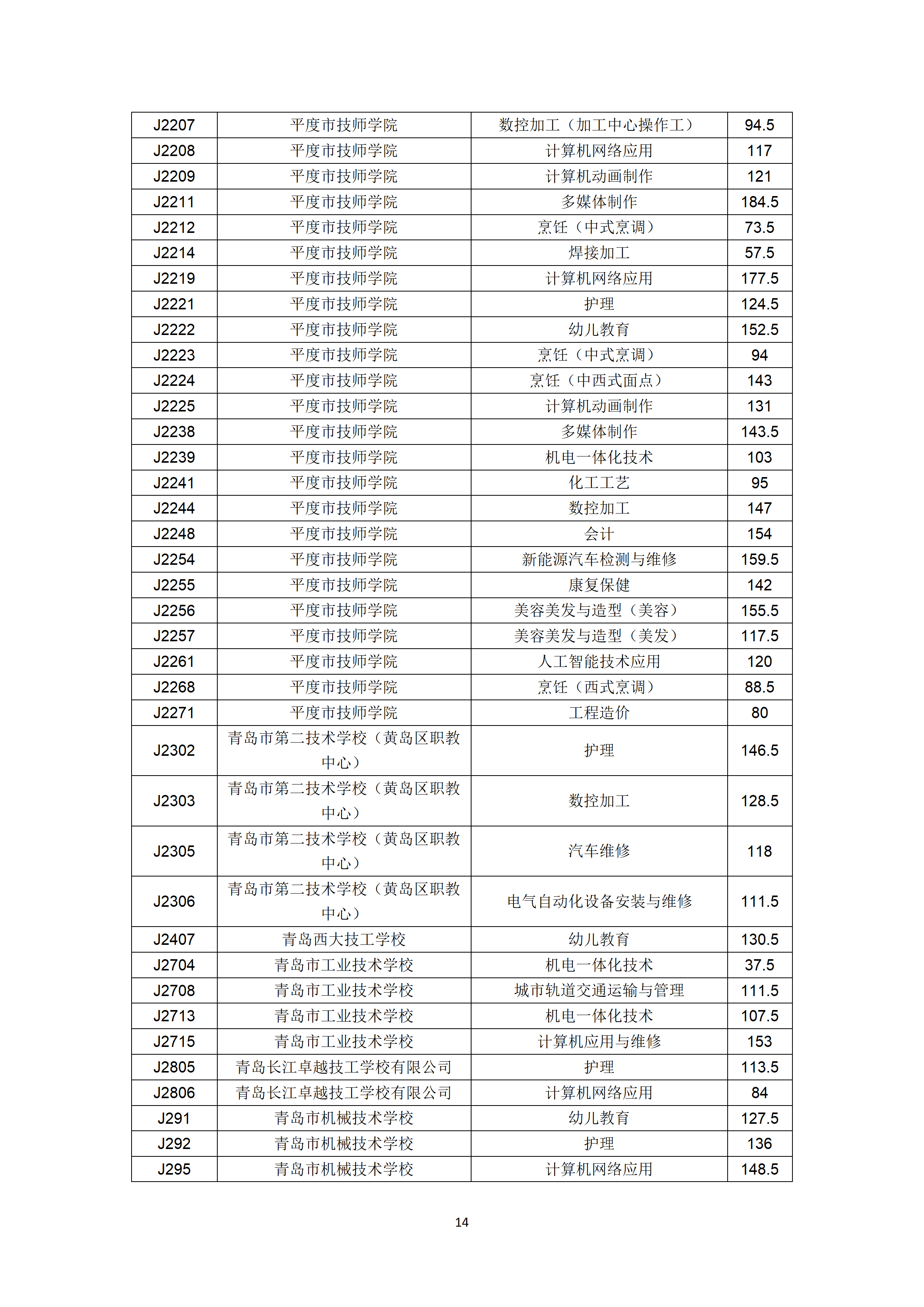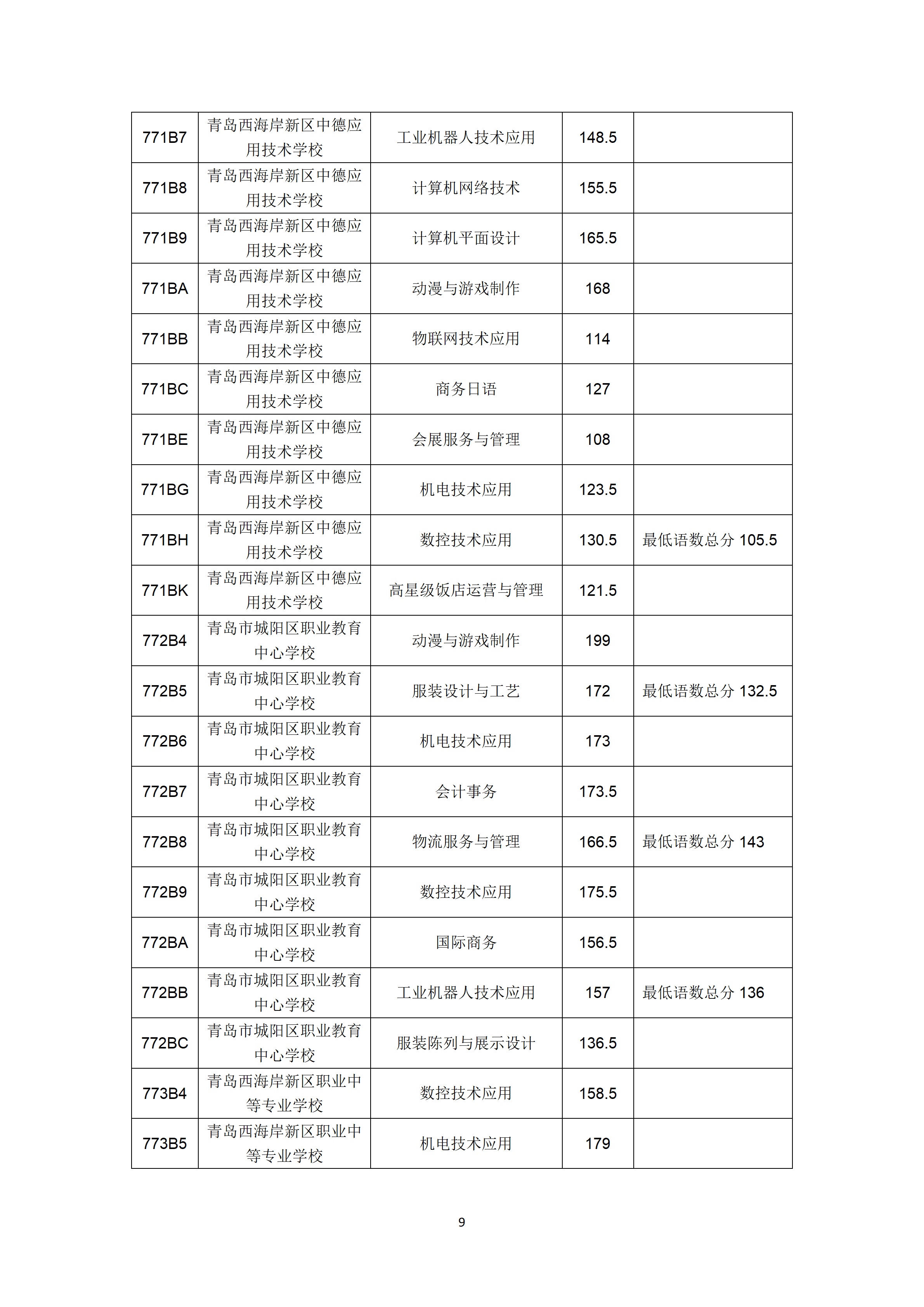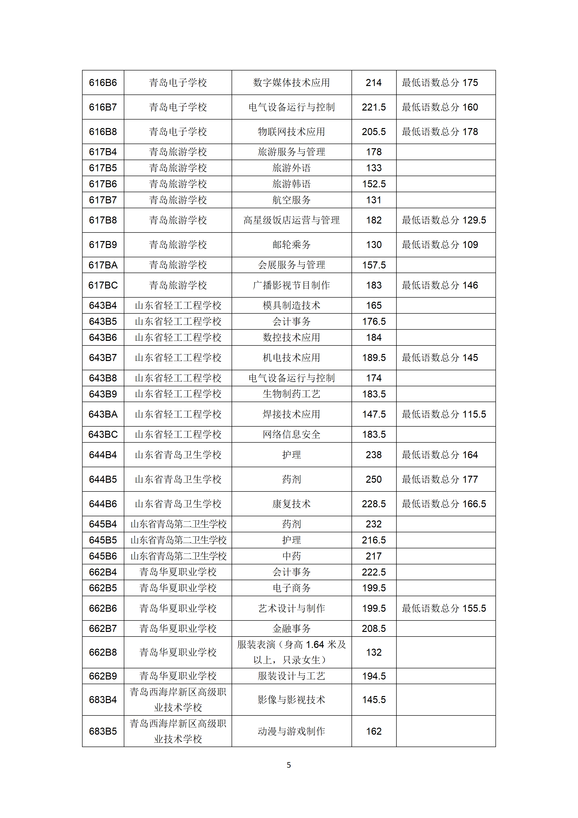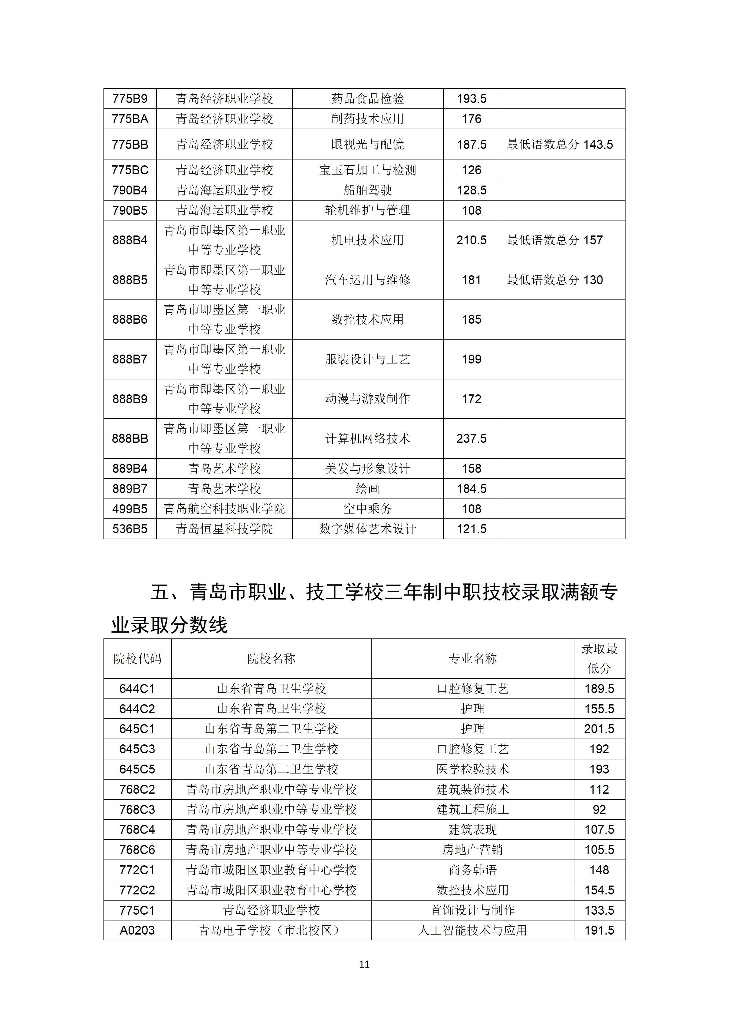 2022年山东青岛市职业类学校第一阶段招生录取分数线公告