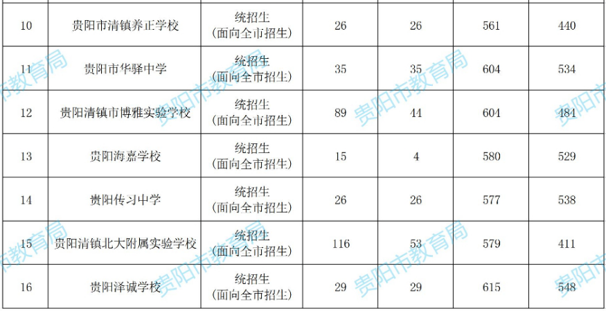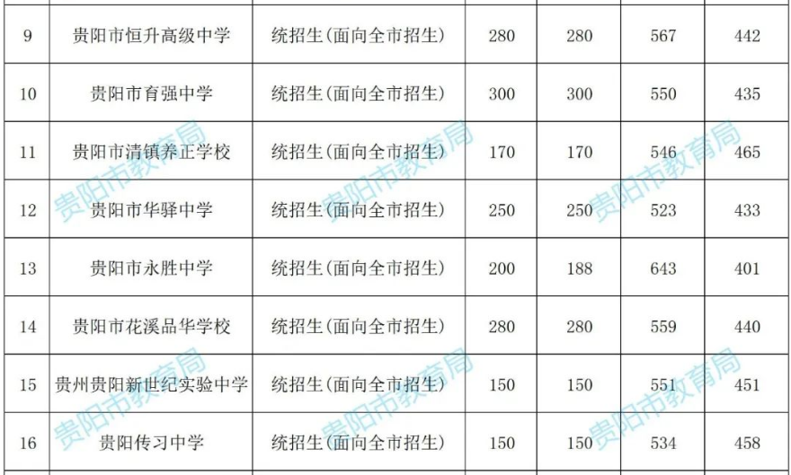 2025年贵州贵阳贵安高中阶段学校志愿填报最低控制线划定