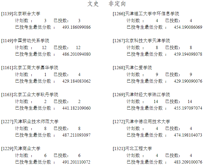 宁夏2022年普通高校招生第二批录取院校本科文史类投档信息