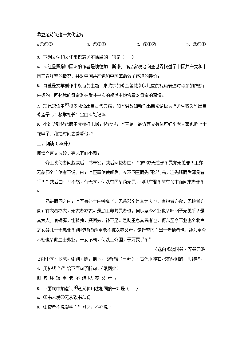 【文档预览】 无忧考网整理发布2022年江苏徐州中考语文试题及答案(Word版),前五页预览如下: