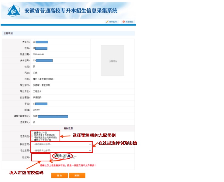 在充分阅读《招生章程》,了解院校招生要求后,根据自身情况,选择院校志愿和专业志愿。