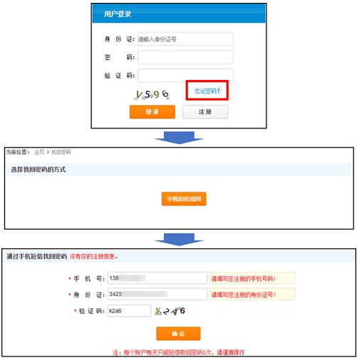 使用电脑浏览器打开zsbbm.ahzsks.cn,请勿使用手机浏览器操作。密码与前次报名时相同,如遗忘密码,请点击“忘记密码”,通过手机短信验证找回密码。