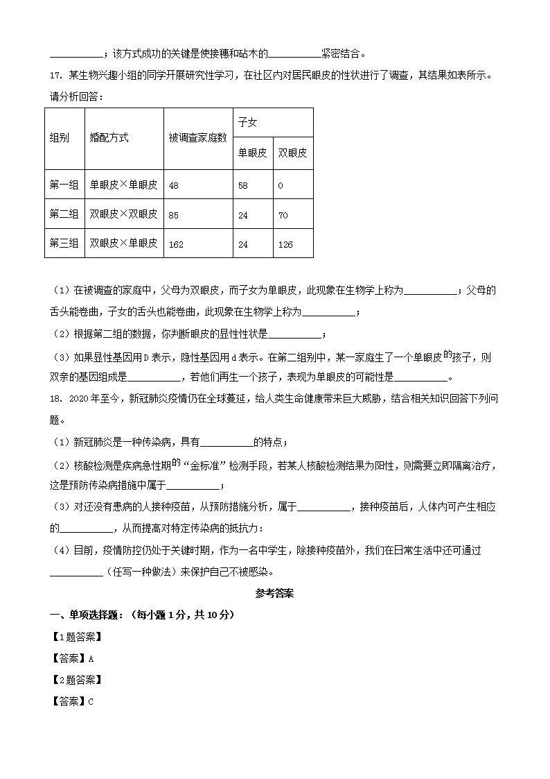 【文档名称】 2022年辽宁本溪中考生物真题及答案(Word版).doc